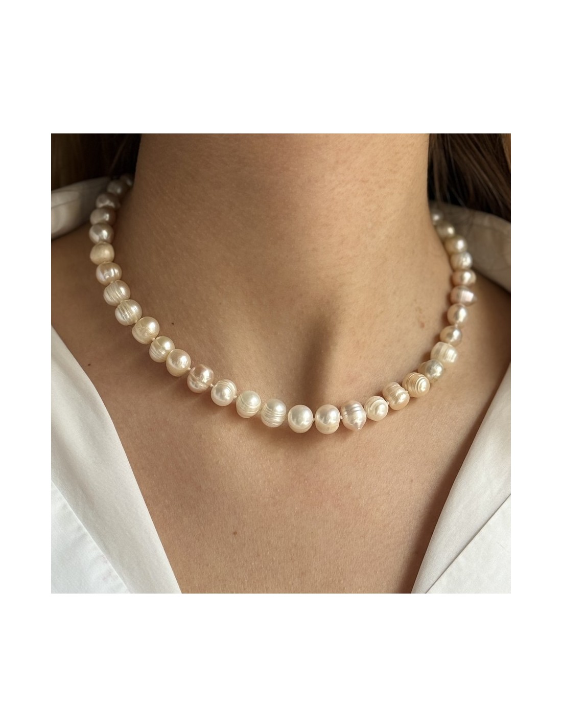 Collana Perle Acqua Dolce Irregolari Chiusura Oro Giallo