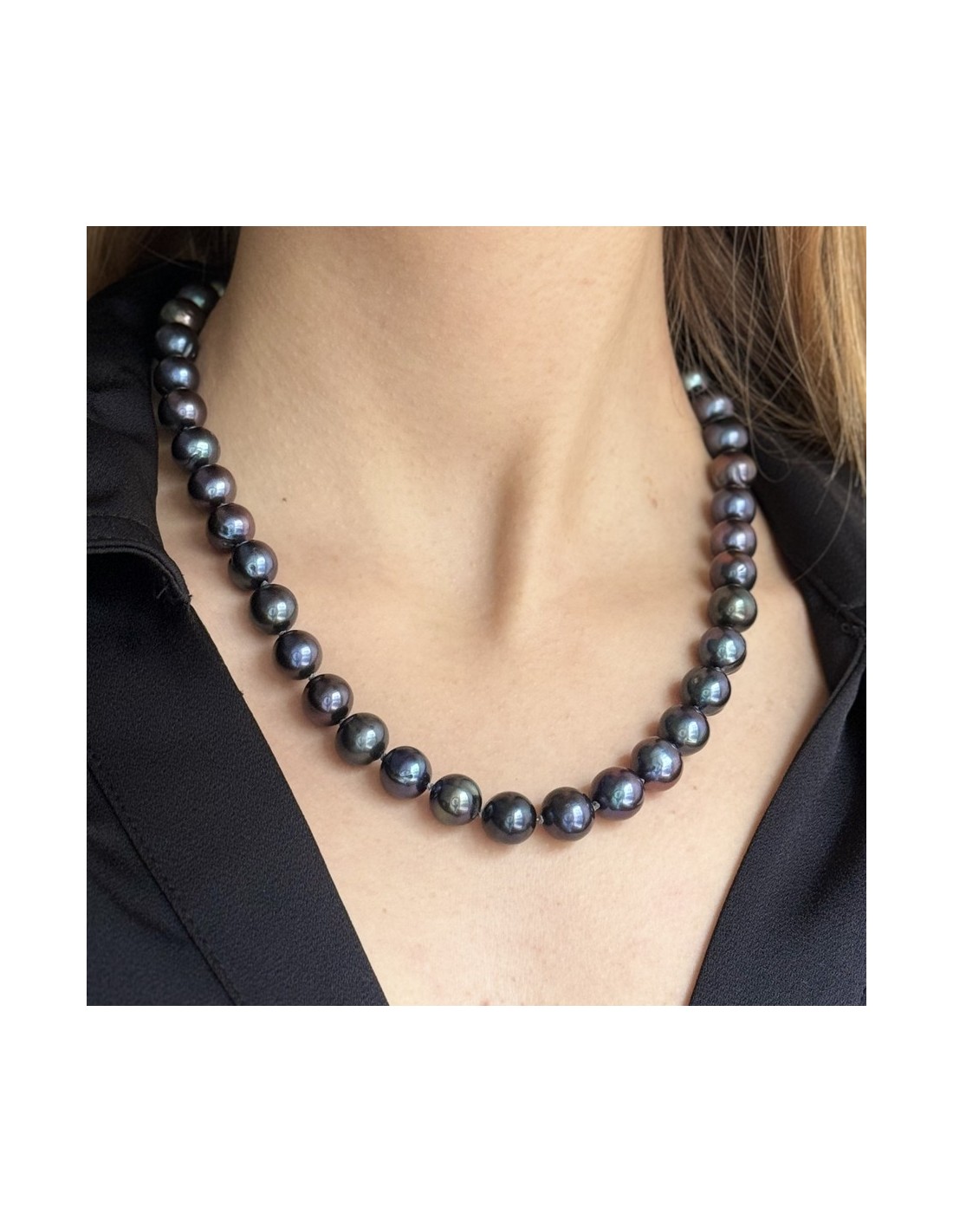 •MATERIALE: la collana è composta da perle di acqua dolce tonde scure e da una chiusura interamente in oro Giallo 750‰ (18 Carati);