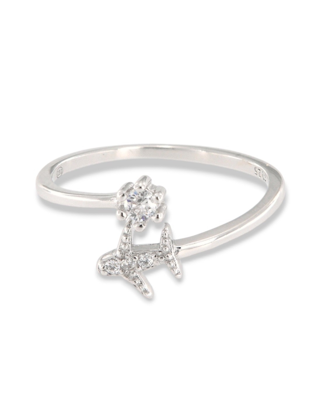 Anello Argento Rodiato Aereoplano Punto Luce
