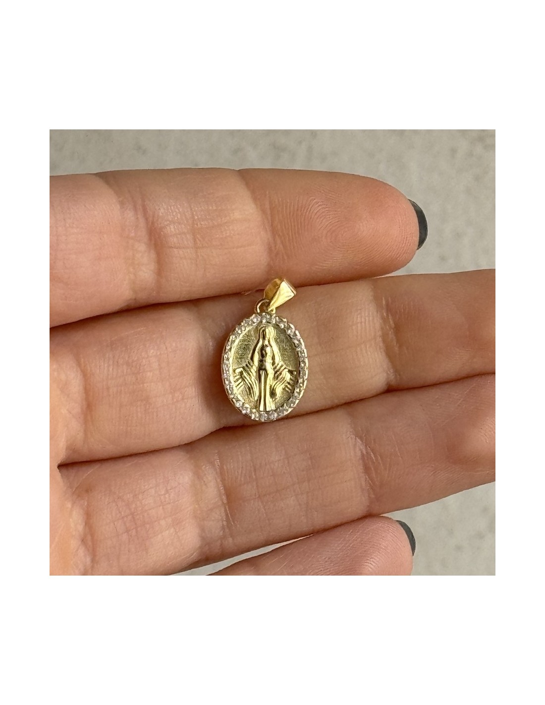 Ciondolo Argento Dorato Madonna Miracolosa Zirconi 1,5GR