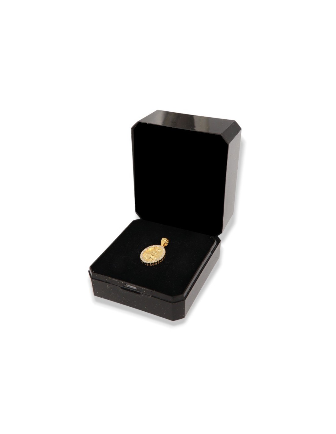 •MATERIALE: Il ciondolo è realizzato in argento 925‰ Dorato (trattamento brillantante contro l'annerimento) rappresentante da un lato la Madonna Miracolosa e dall'altro lato è riprodotto il Monogramma della vergine Maria, circondato dalle 12 stelle, i dodici apostoli, le 12 tribù di Israele, il tutto accompagnato da Zirconia Cubica o pietre CZ bianche, su tutto il bordo del ciondolo, con taglio di alta qualità simile al taglio Brillante del Diamante;