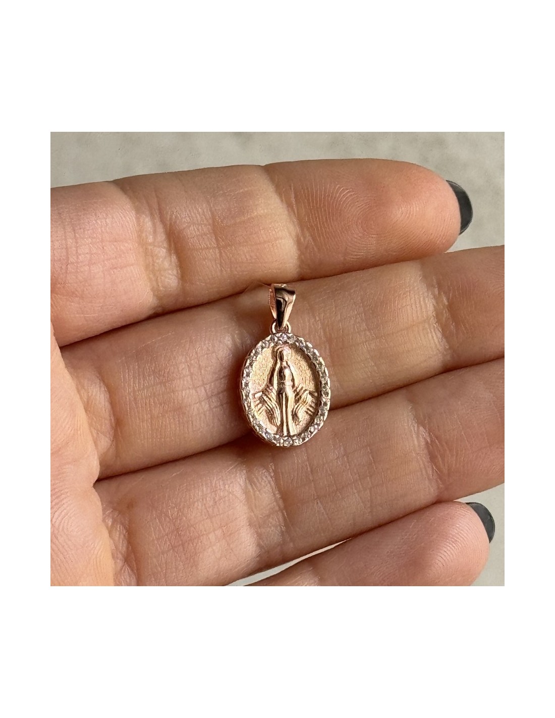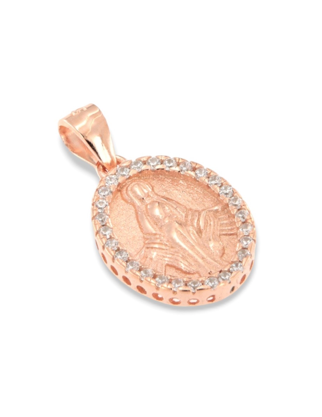 Ciondolo Argento Rosato Madonna Miracolosa Zirconi 1,5GR