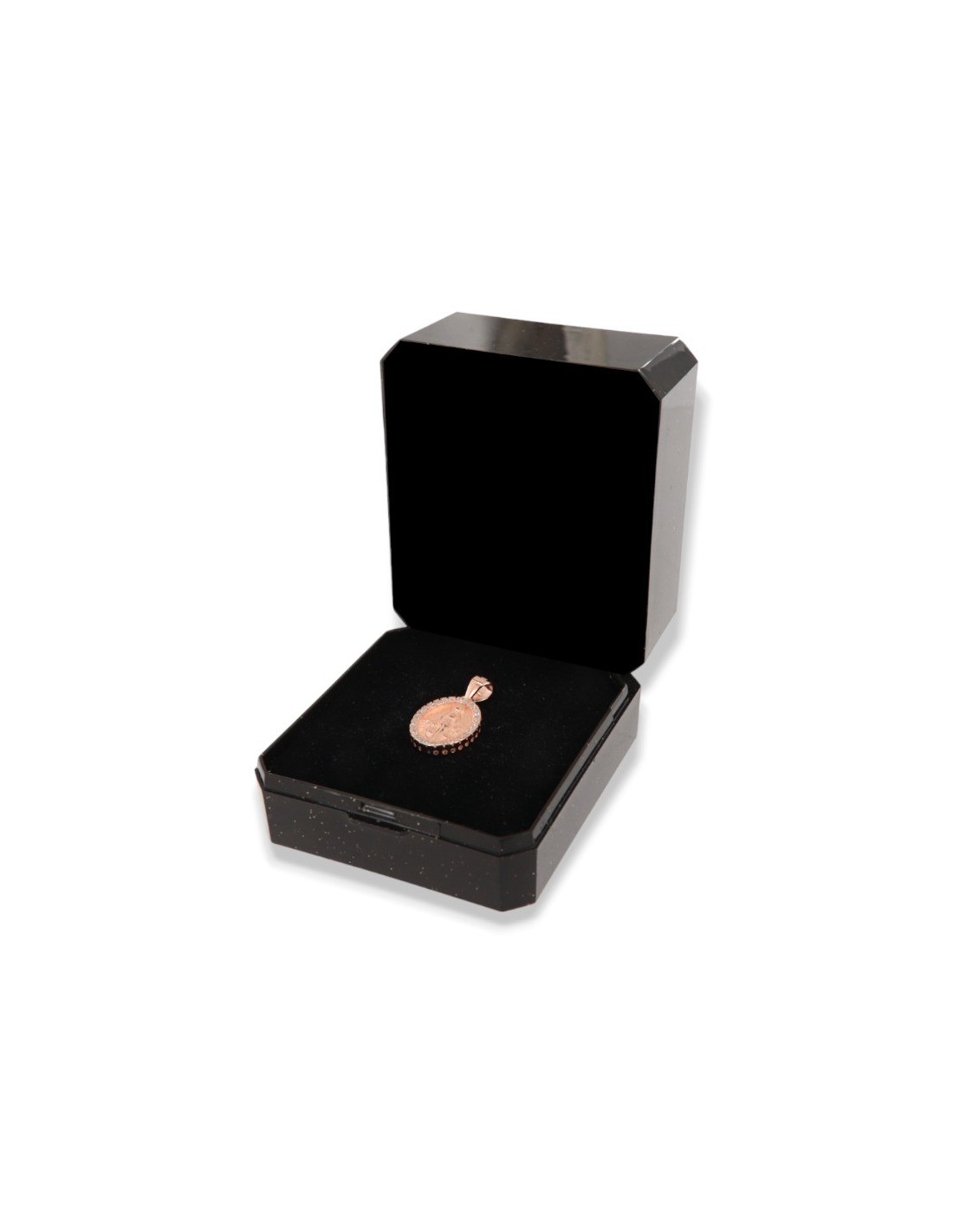 •MATERIALE: Il ciondolo è realizzato in argento 925‰ Rosato (trattamento brillantante contro l'annerimento) rappresentante da un lato la Madonna Miracolosa e dall'altro lato è riprodotto il Monogramma della vergine Maria, circondato dalle 12 stelle, i dodici apostoli, le 12 tribù di Israele, il tutto accompagnato da Zirconia Cubica o pietre CZ bianche, su tutto il bordo del ciondolo, con taglio di alta qualità simile al taglio Brillante del Diamante;