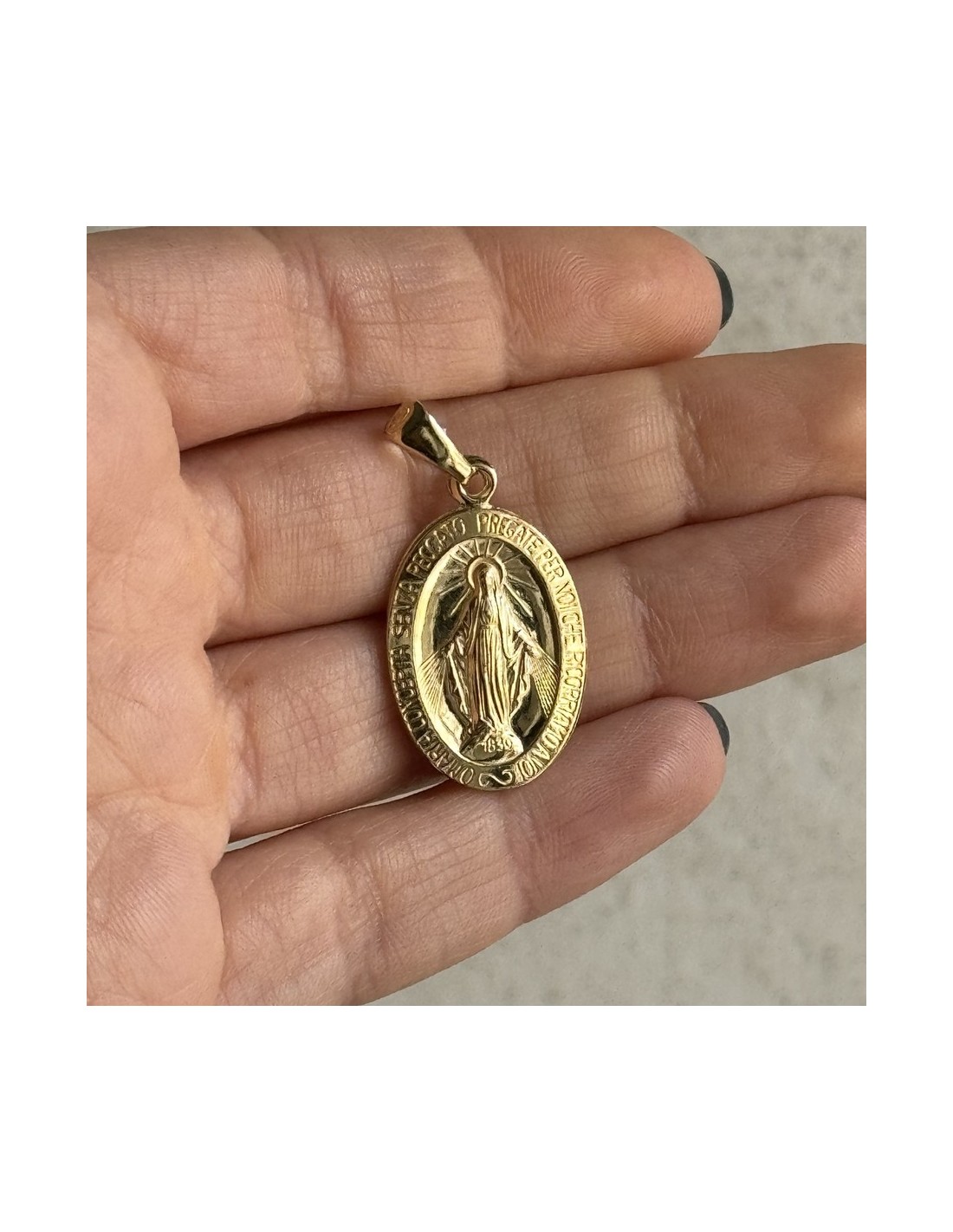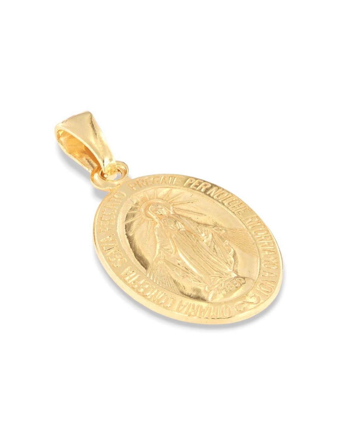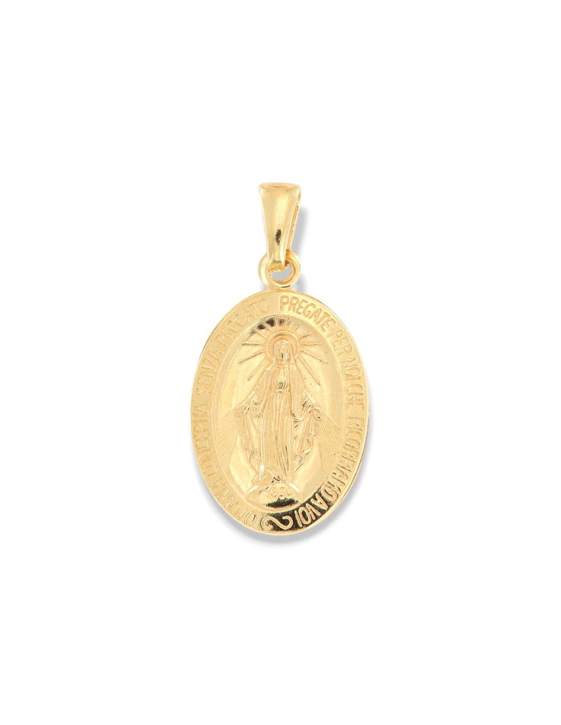 •MATERIALE: Il ciondolo è realizzato in argento 925‰ Dorato (trattamento brillantante contro l'annerimento) rappresentante da un lato la Madonna Miracolosa e dall'altro lato è riprodotto il Monogramma della vergine Maria, circondato dalle 12 stelle, i dodici apostoli, le 12 tribù di Israele;