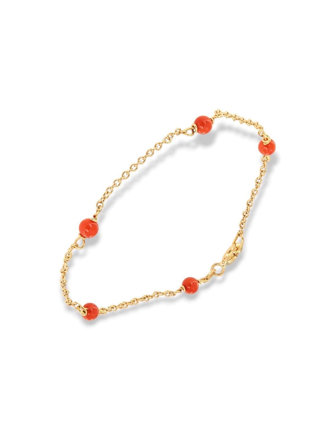 Bracciale Oro Giallo Rollò Sfere Rosse Corallo