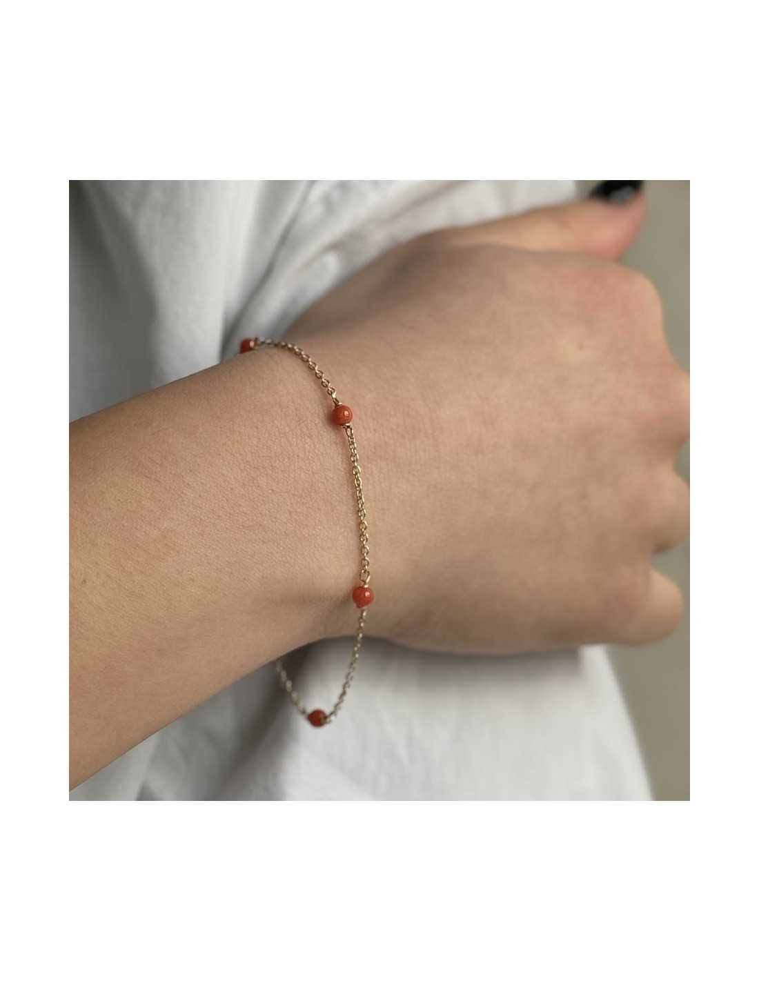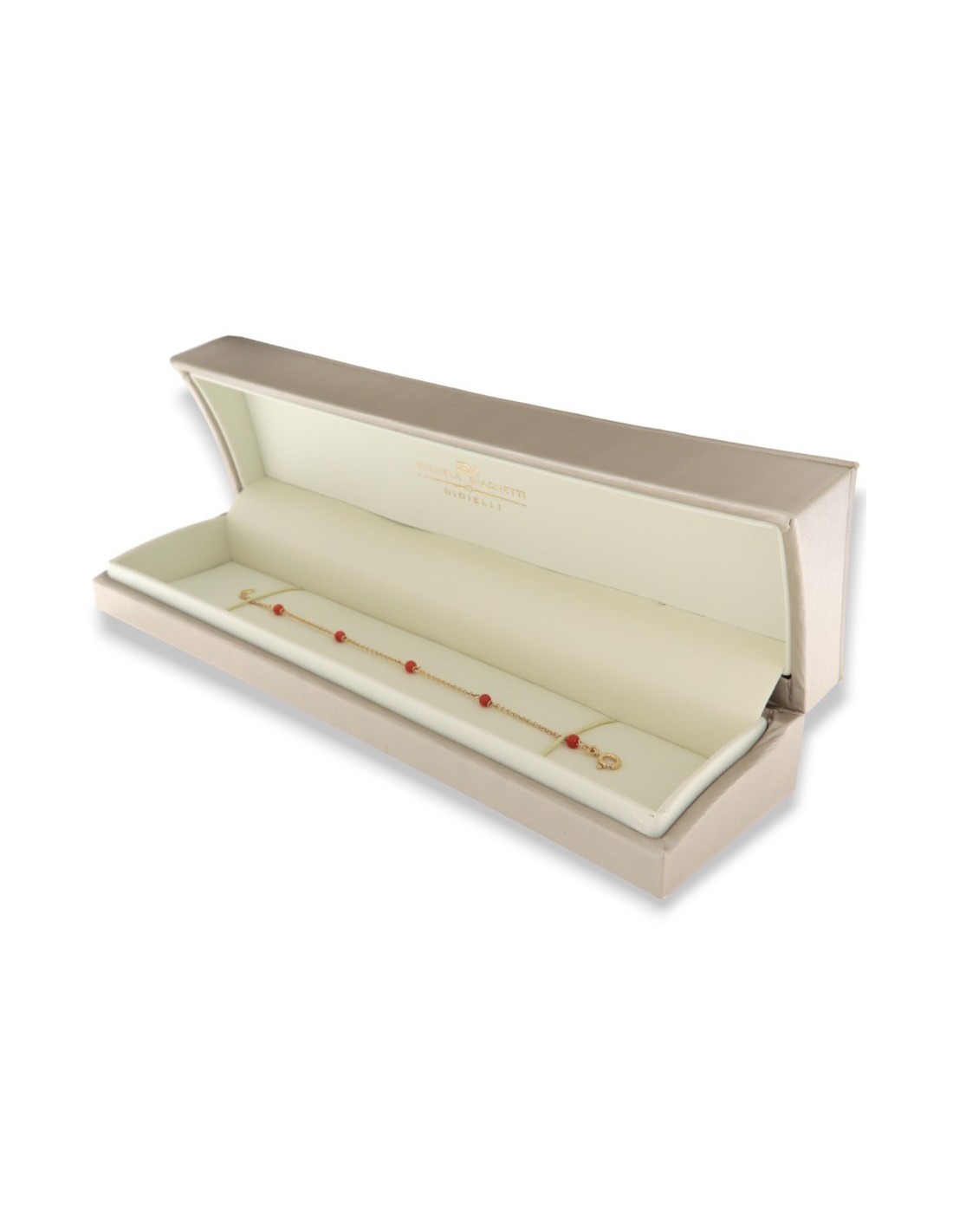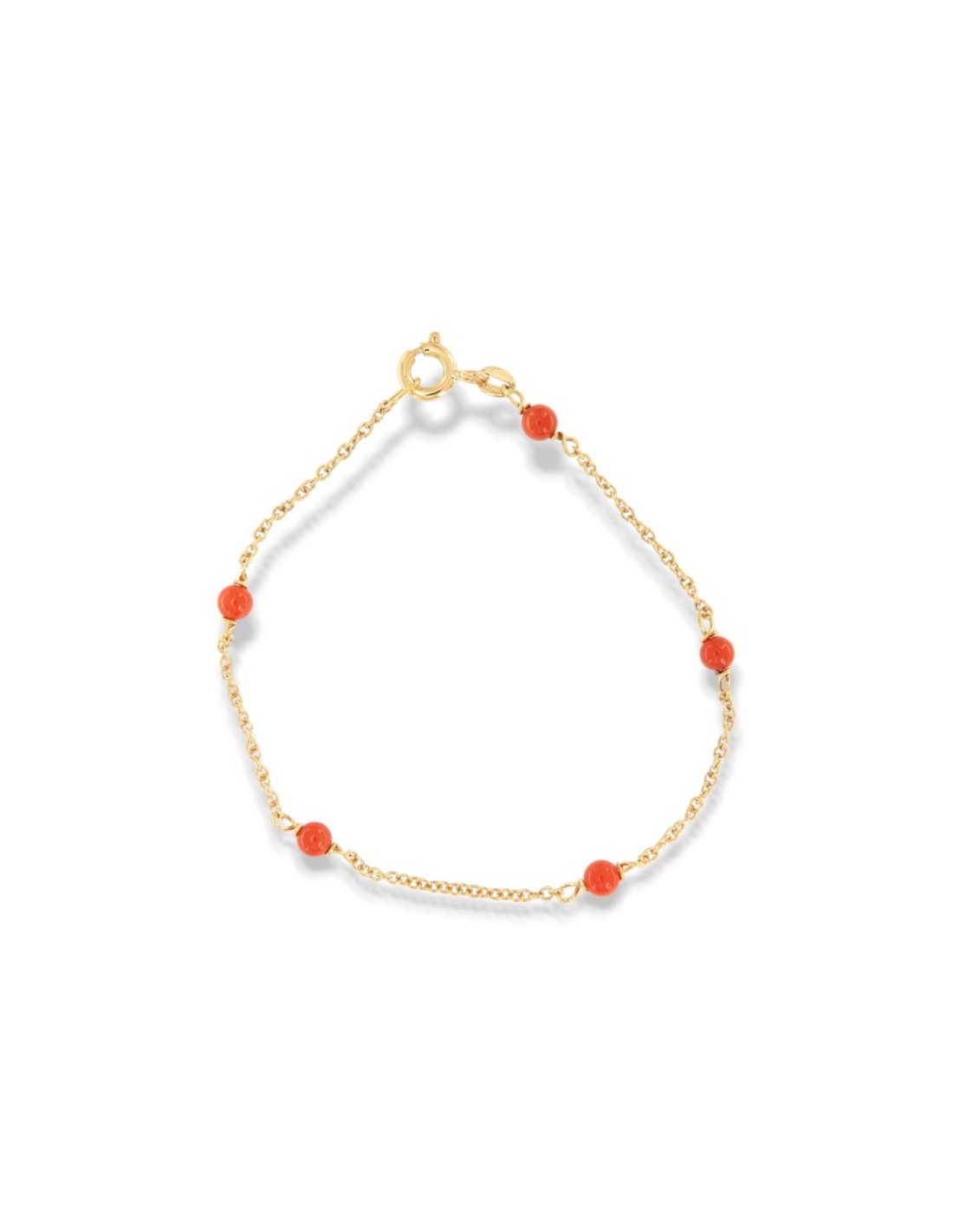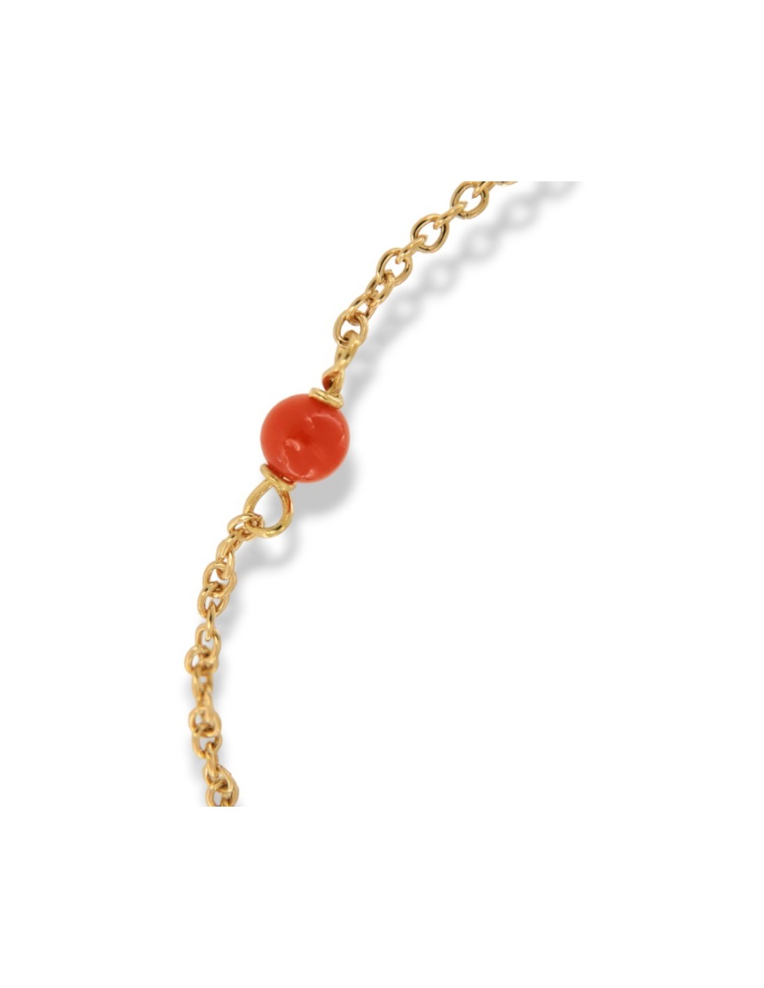 •MATERIALE: il bracciale è realizzato interamente in oro Giallo 750‰ (18 Carati ) modello catenina maglia rollò con sfere in corallo rosso;