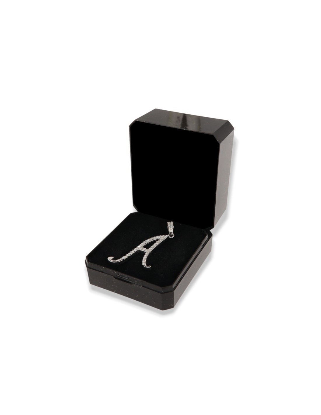 Ciondolo Argento Rodiato Iniziale A Zirconi Bianchi
