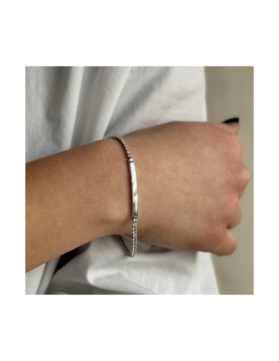 Bracciale Argento Rodiato Tennis Piastra Centrale