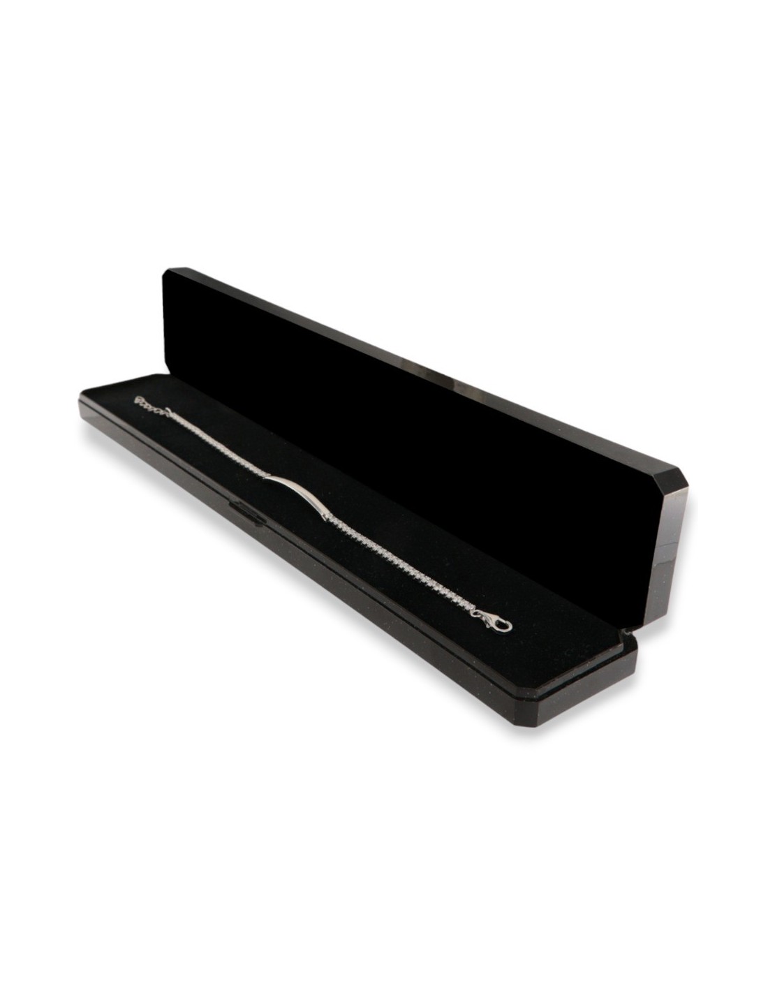 •MATERIALE: il bracciale è realizzato interamente in argento 925‰ Rodiato (trattamento brillantante contro l'annerimento) modello tennis con piastra centrale con l'applicazione di Zirconia Cubica o CZ bianchi da due millimetri di diametro, con taglio di alta qualità simile al taglio Brillante del Diamante;