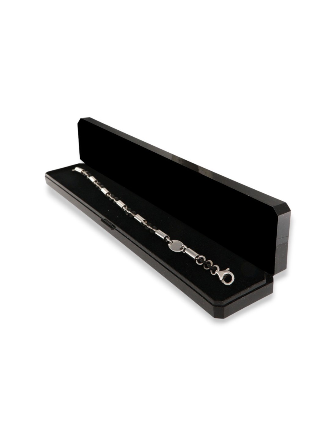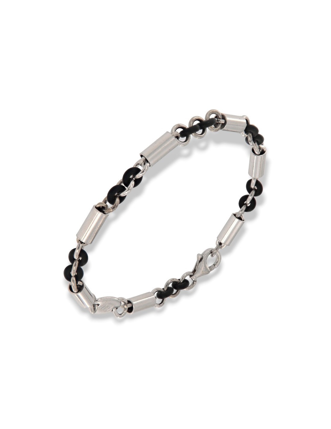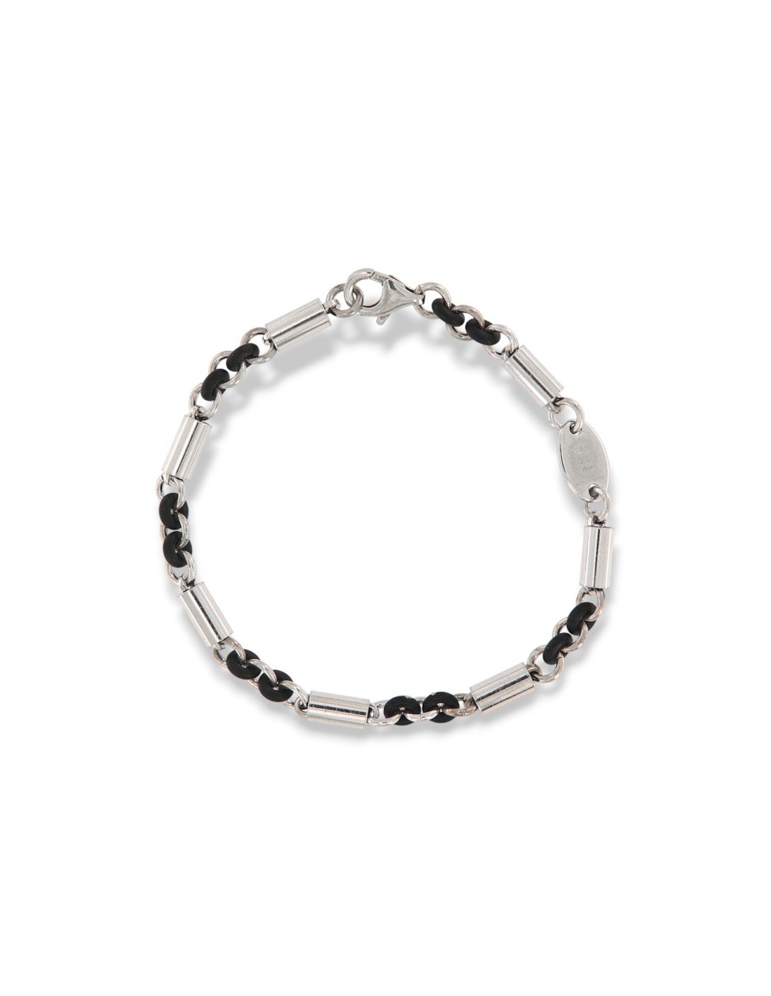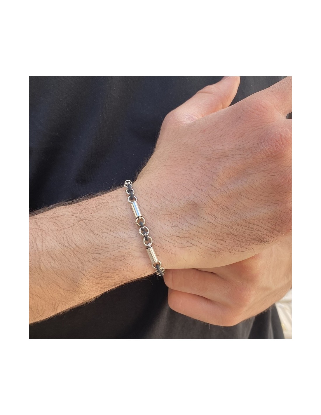 •MATERIALE: il bracciale è realizzato interamente in argento 925‰ Rodiato (trattamento brillantante contro l'annerimento) modello catena composto da maglie tonde e cilindri;