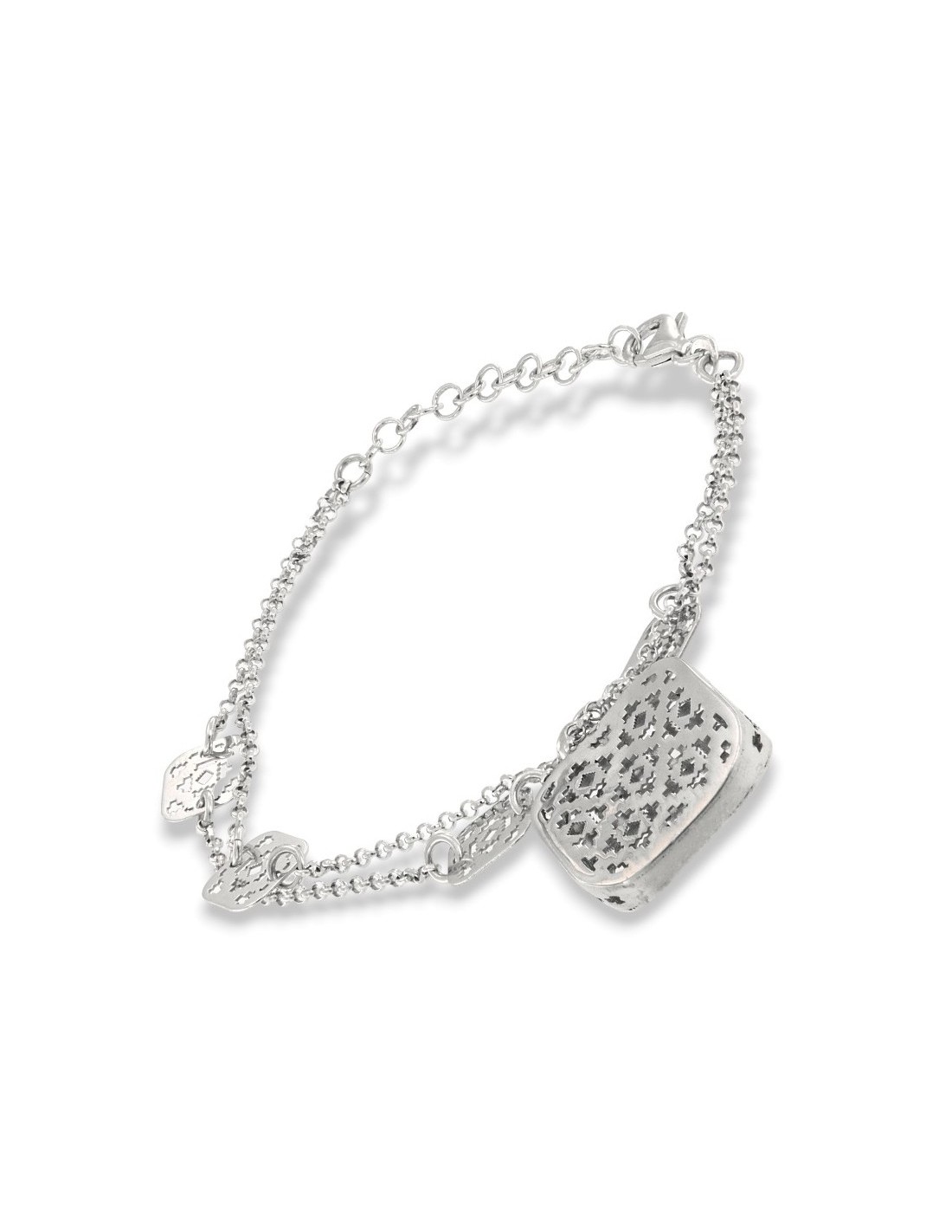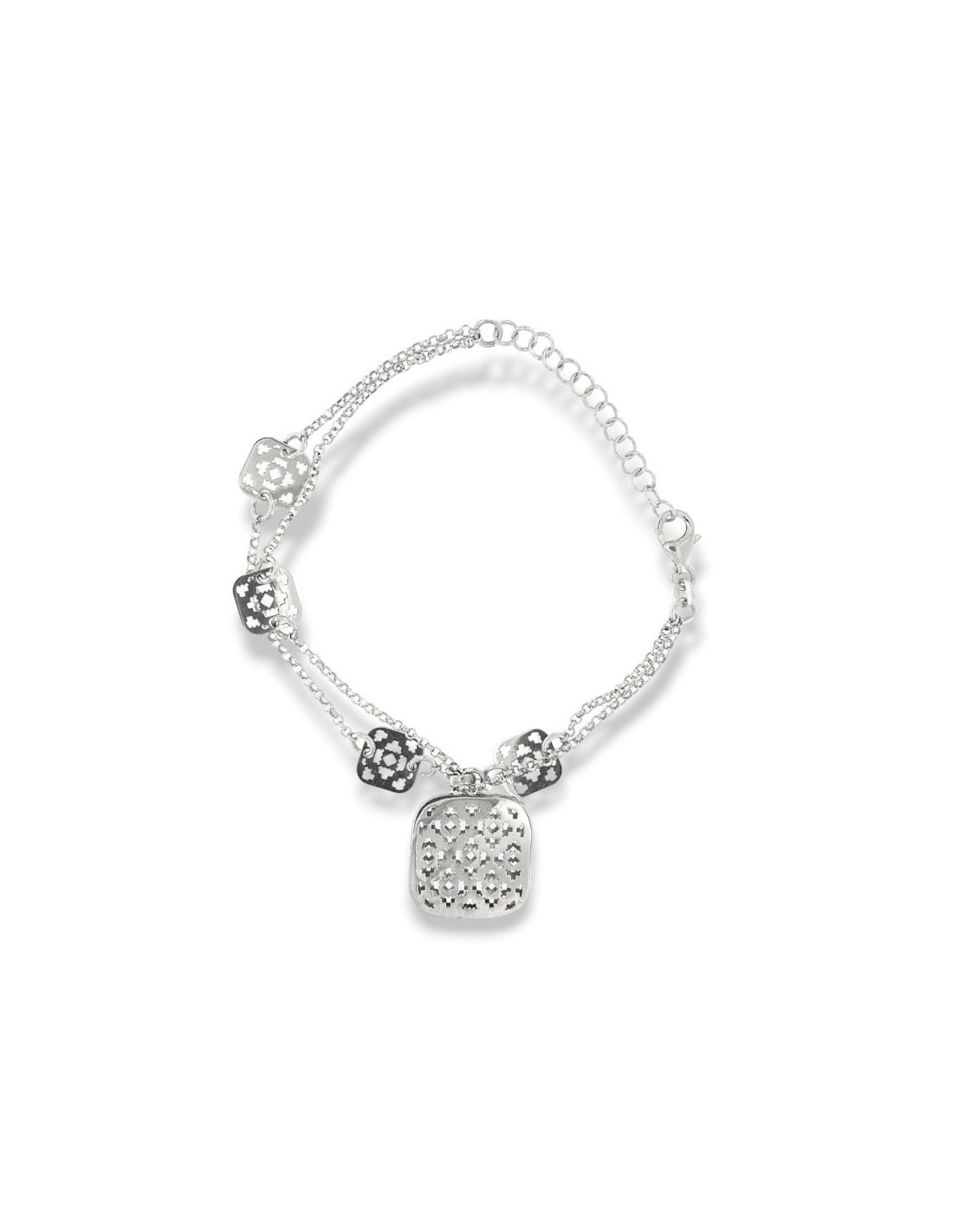 Bracciale Argento Rodiato Rollo Sfaccettata Con Piastre Quadrate Traforate