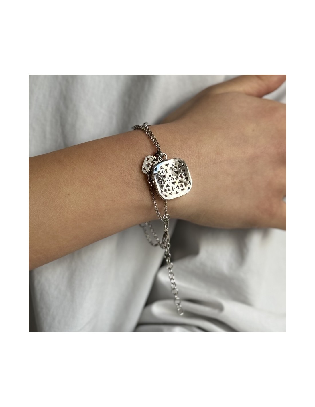 •MATERIALE: il bracciale è realizzato interamente in argento 925‰ Rodiato (trattamento brillantante contro l'annerimento) modello rollo sfaccettata con Piastra Quadre Traforate;