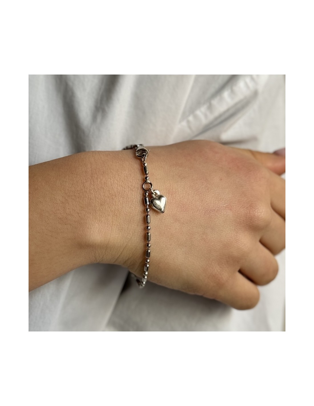 •MATERIALE: il bracciale è realizzato interamente in argento 925‰ Rodiato (trattamento brillantante contro l'annerimento) con ciondolo a forma di cuore bombato;