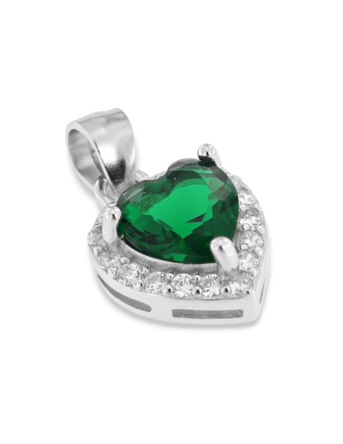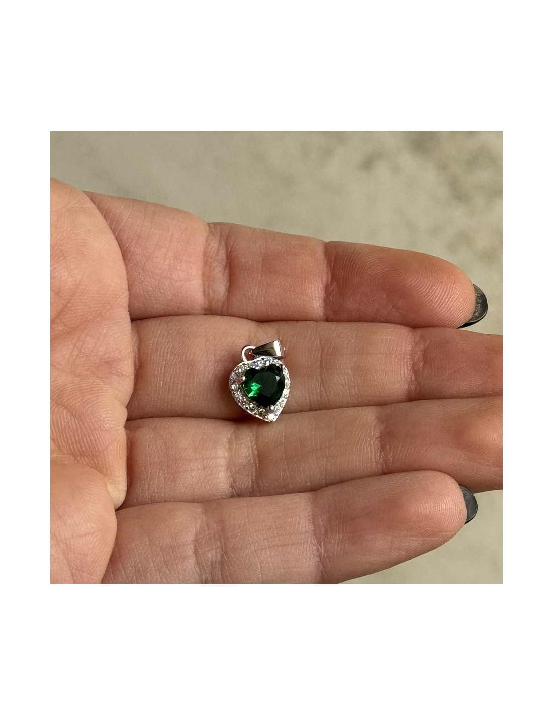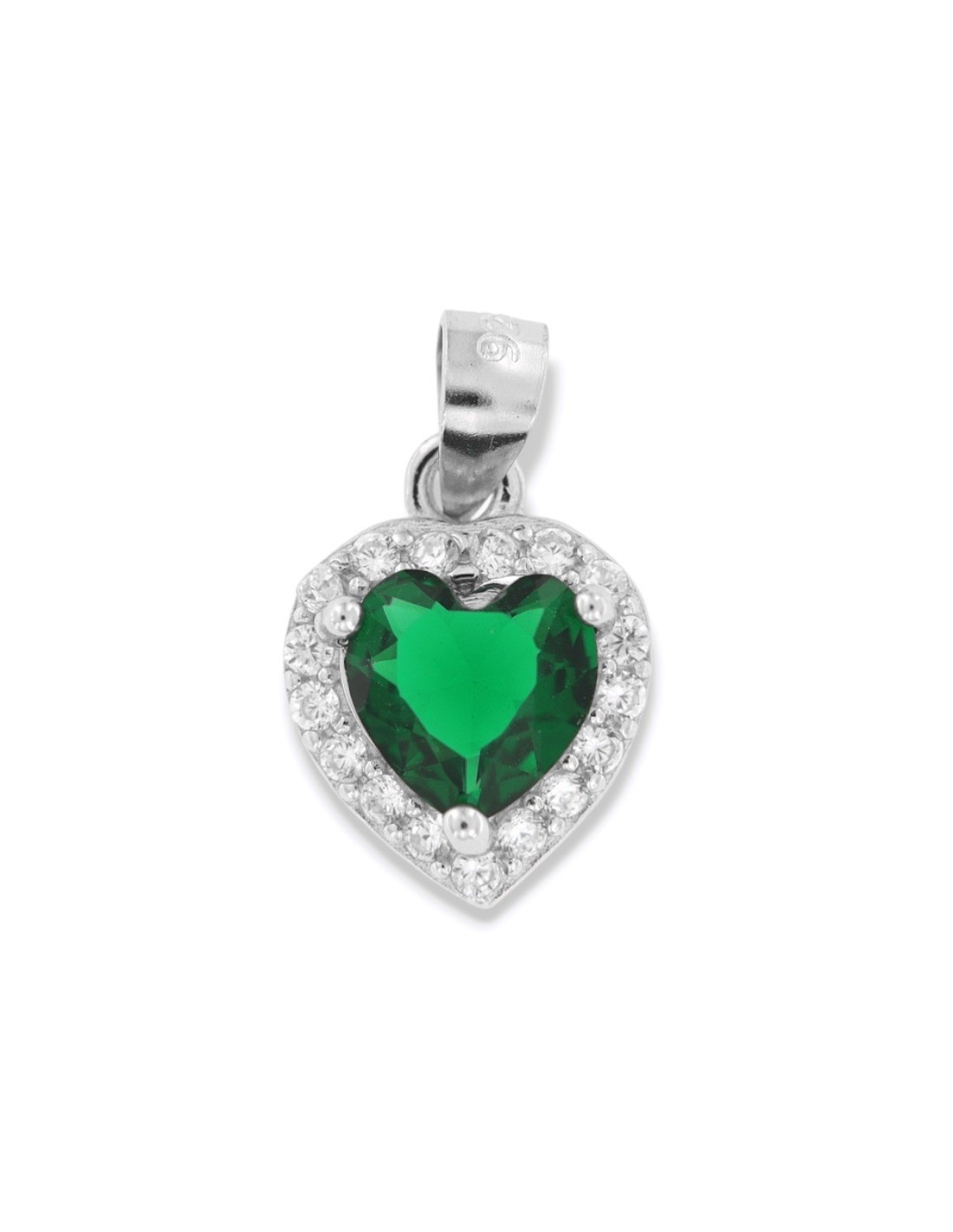 Ciondolo Argento Rodiato Principessa Cuore Verde