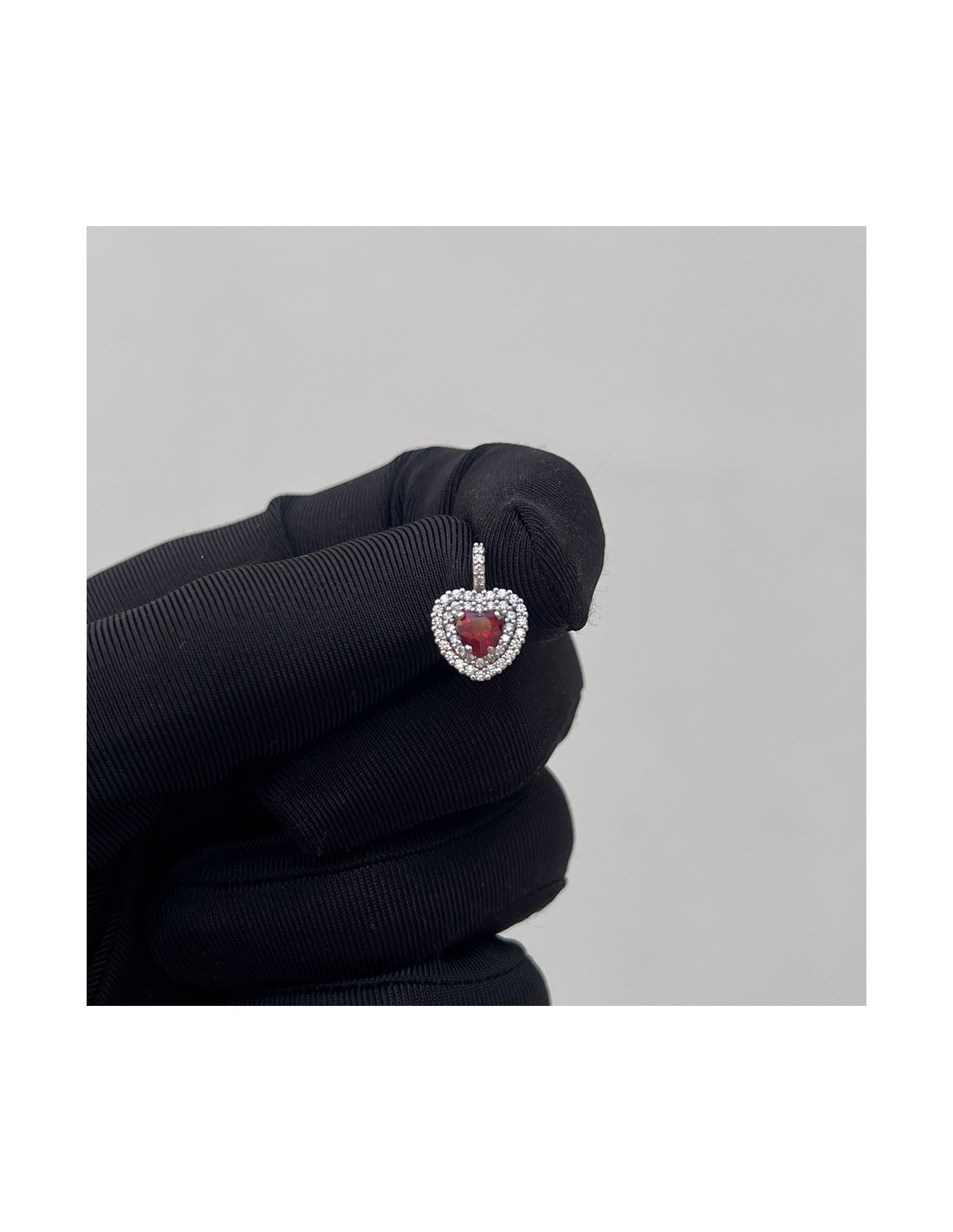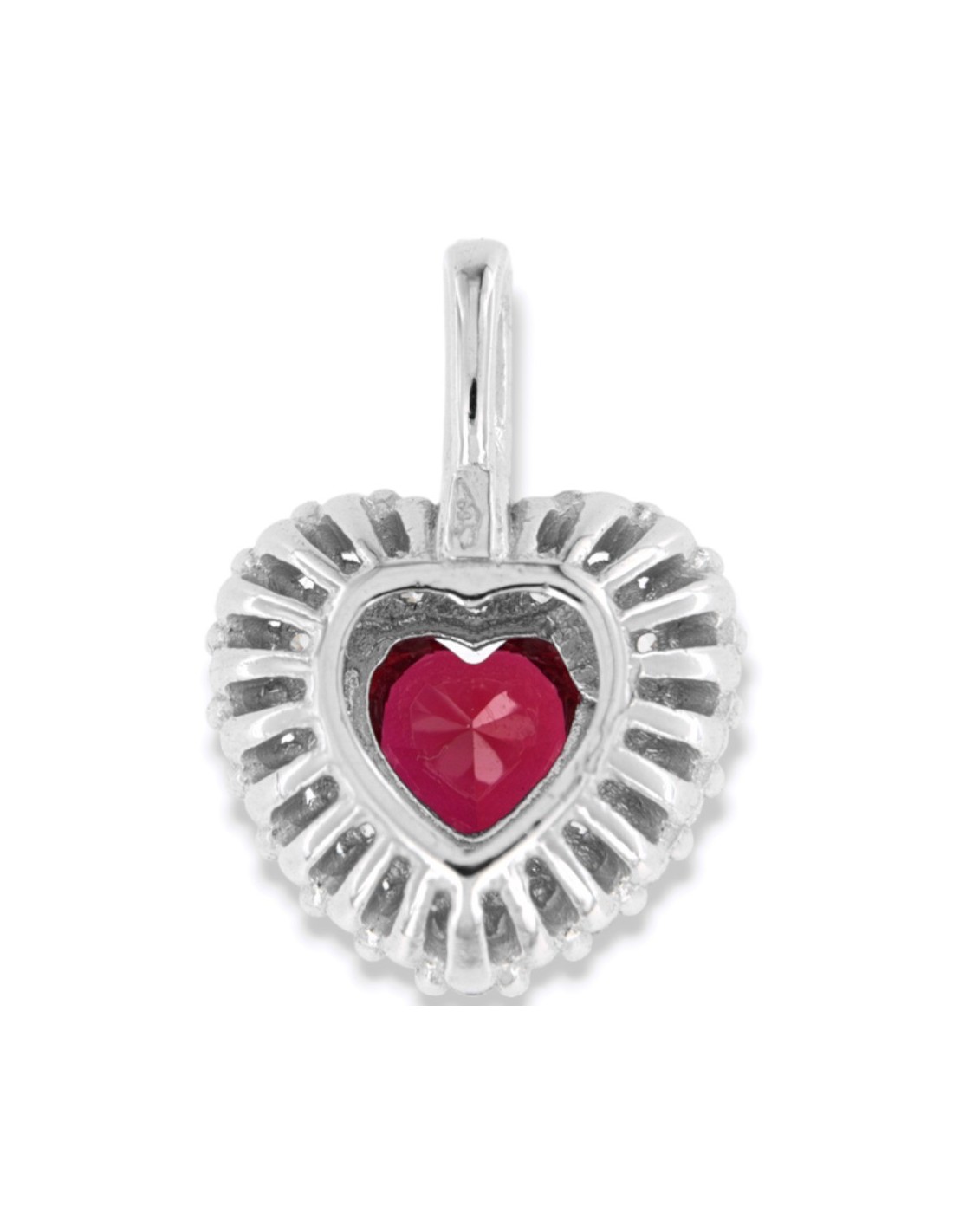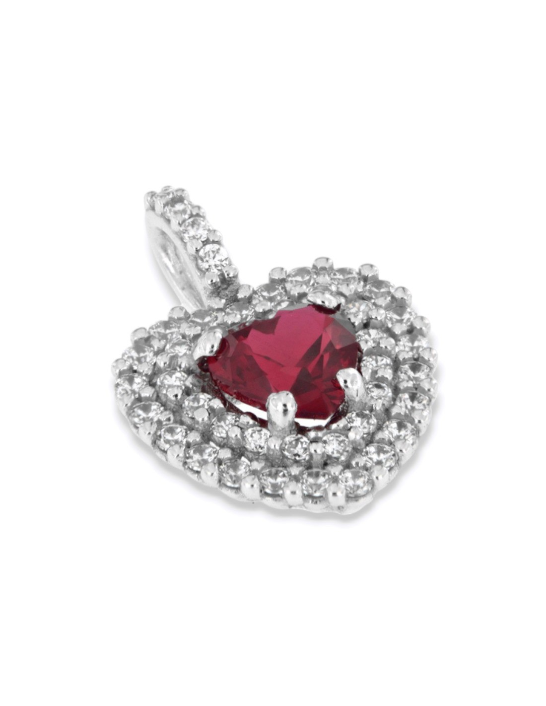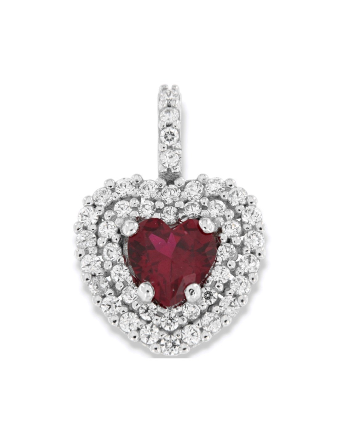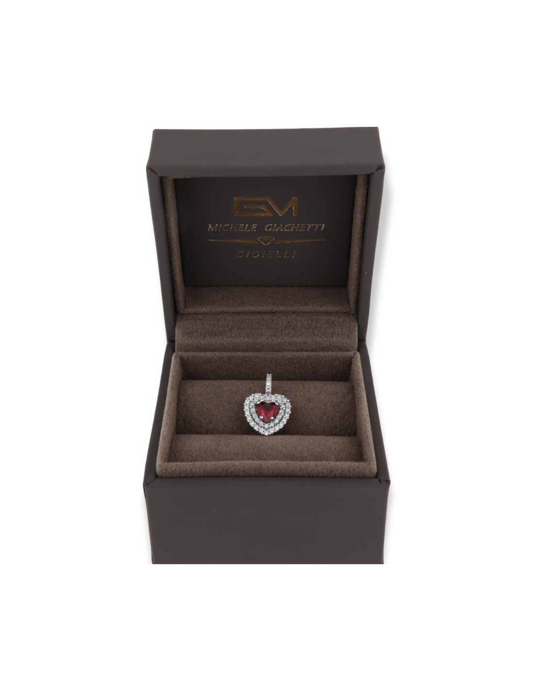 Ciondolo Oro Bianco Cuore Punto Luce Zircone Rosso