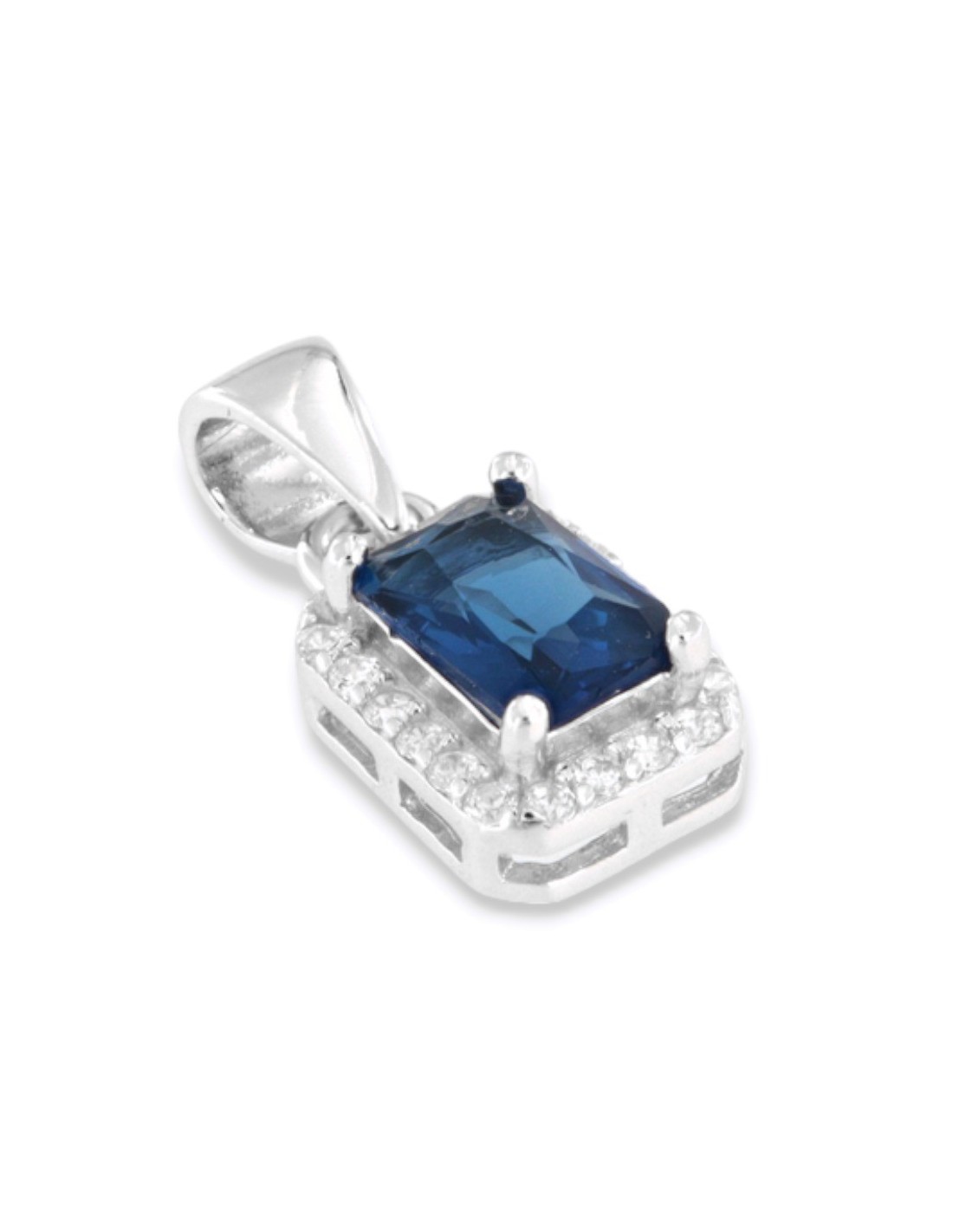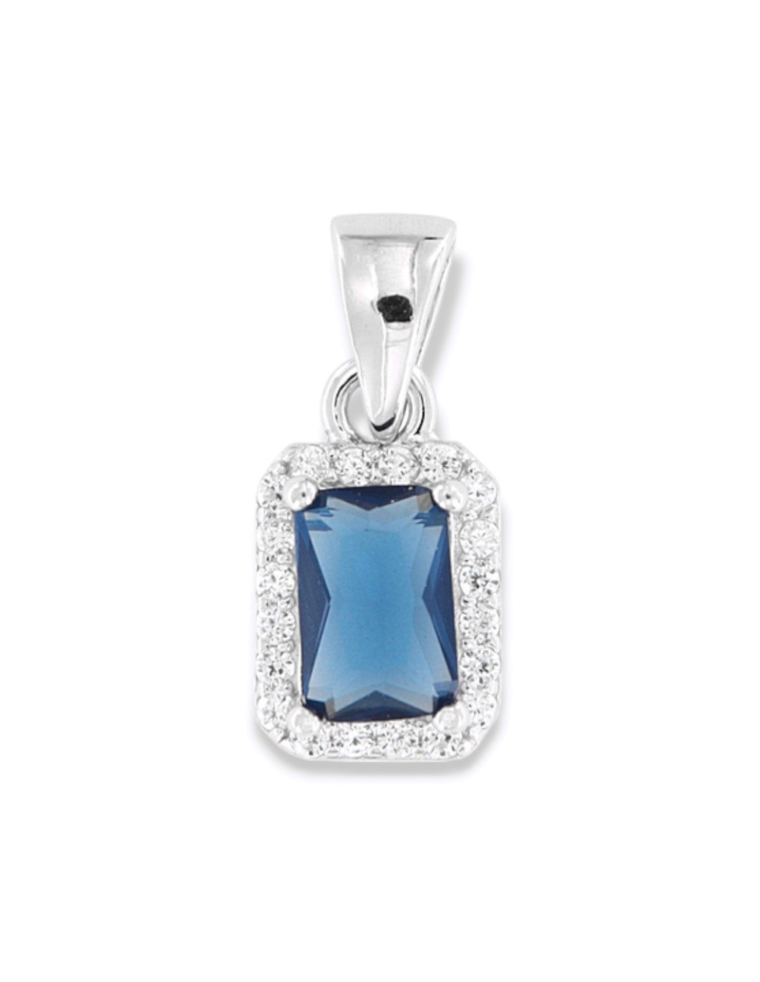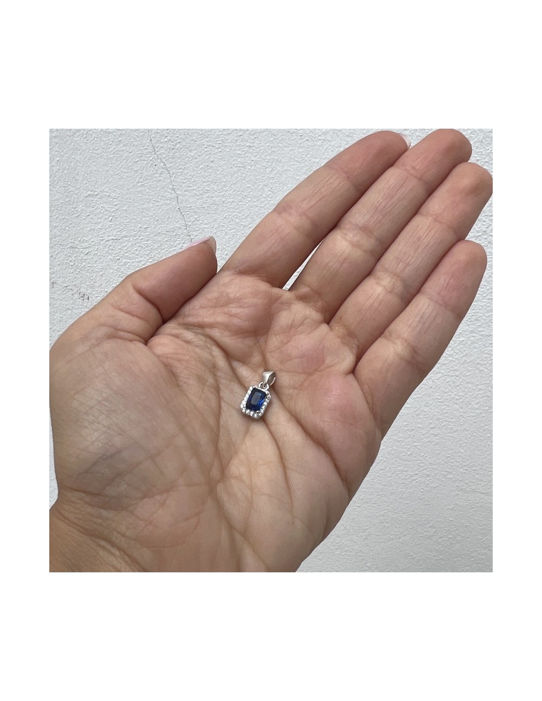 •MATERIALE: Il ciondolo è realizzato interamente in argento 925‰ Rodiato (trattamento brillantante contro l'annerimento) modello principessa rettangolare composto da un Zirconia Cubica o CZ Blu misura 6x4 centrale circondato da altri Zirconia Cubica o CZ bianchi con taglio di alta qualità simile al taglio Brillante del Diamante;