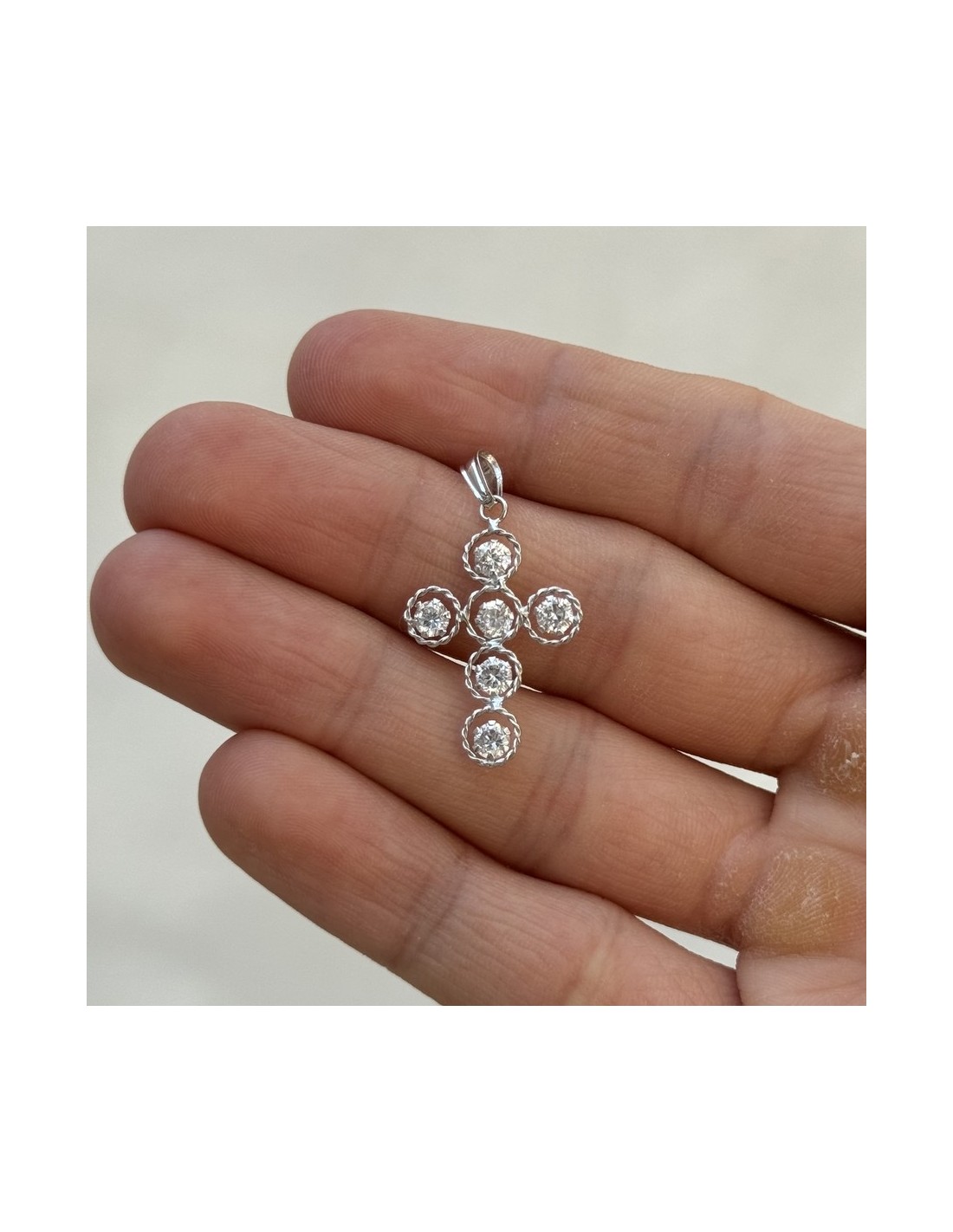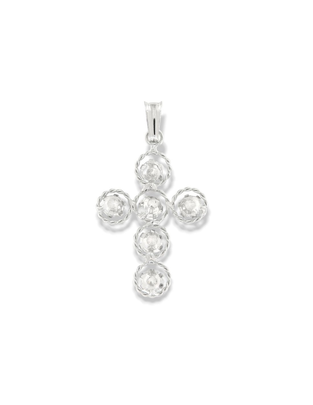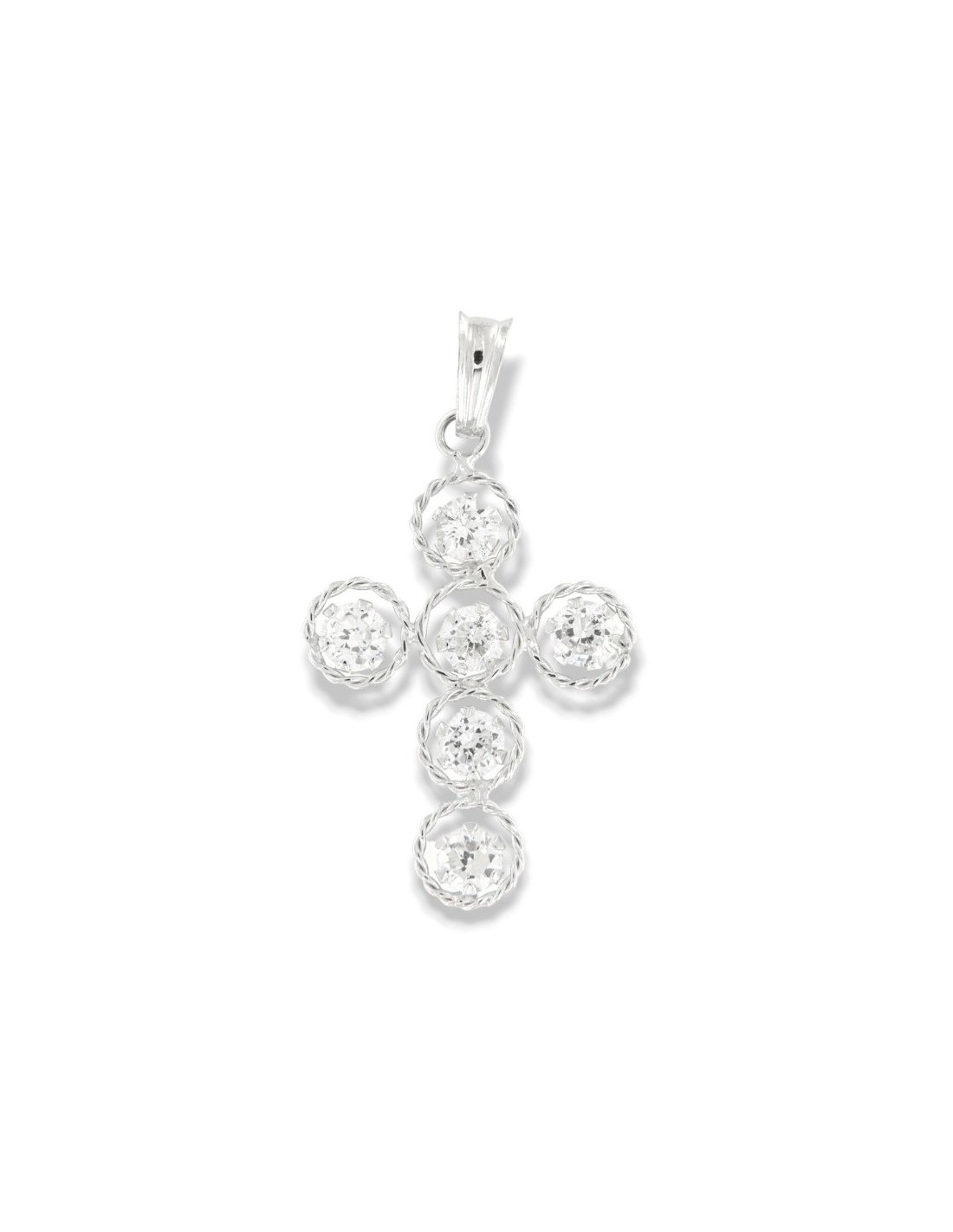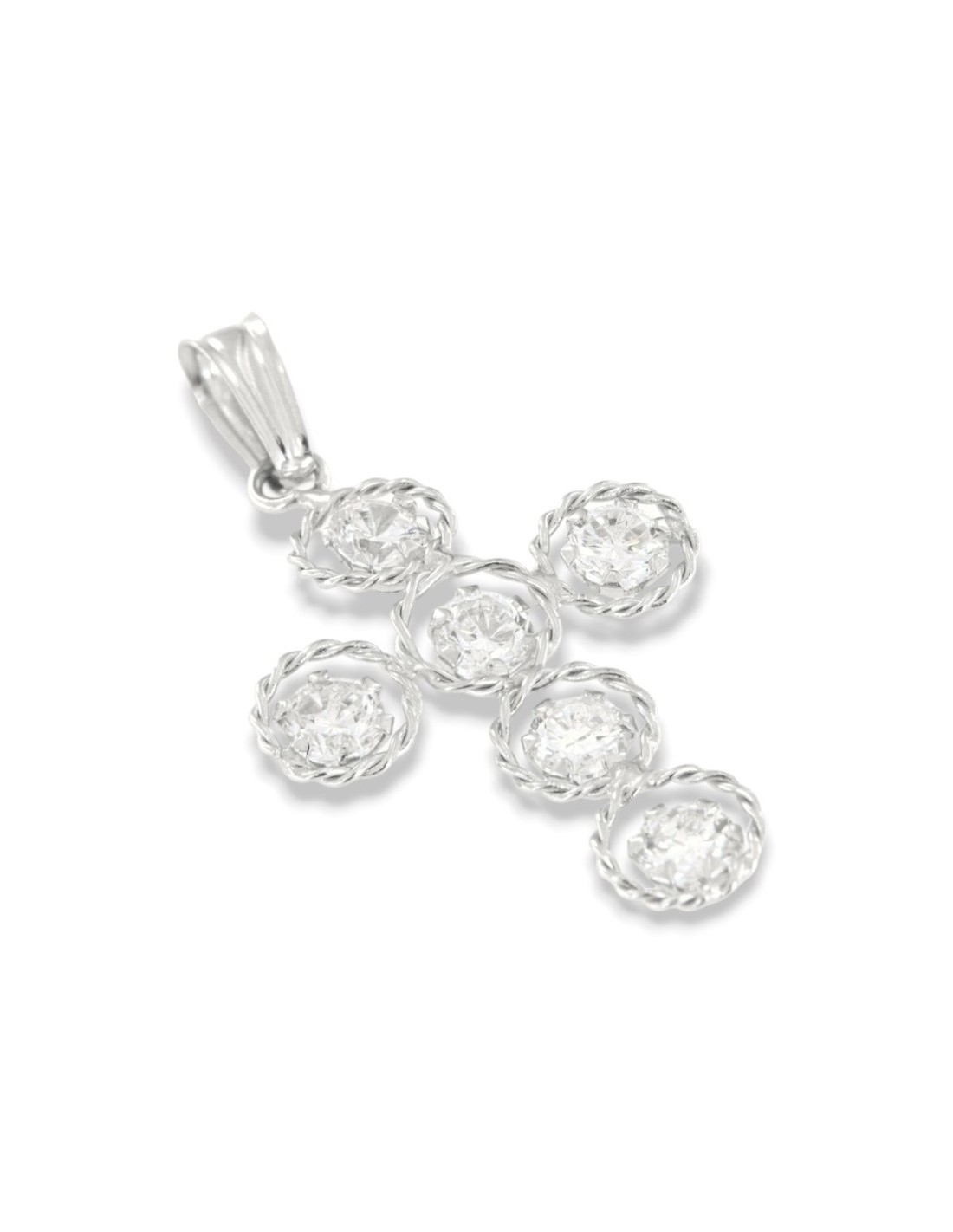 Ciondolo Oro Bianco Crocifisso Zirconi Bianchi A Cerchi