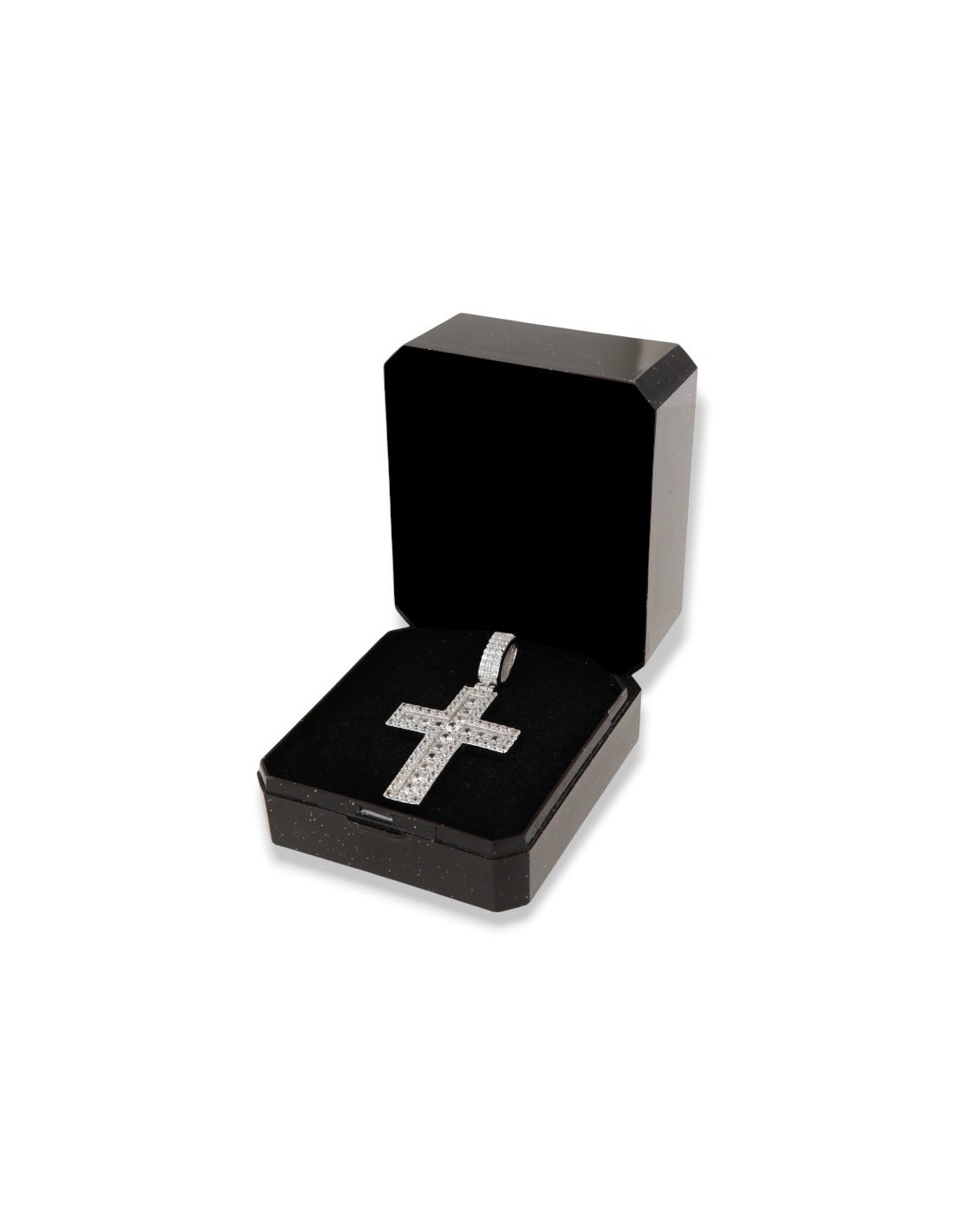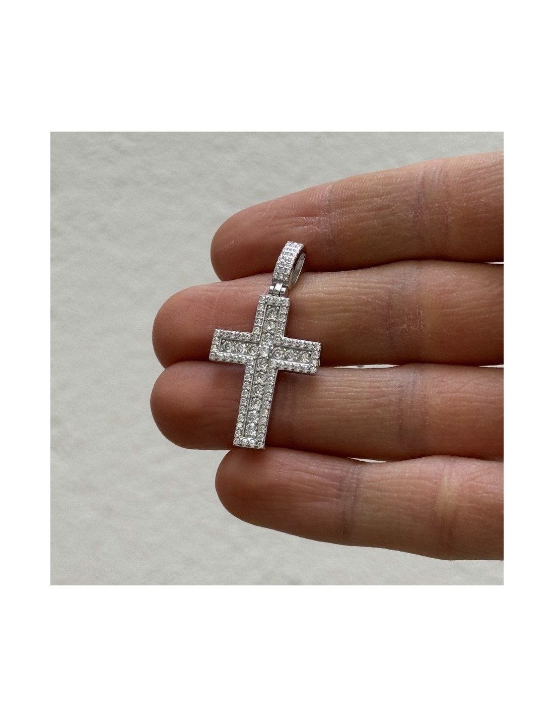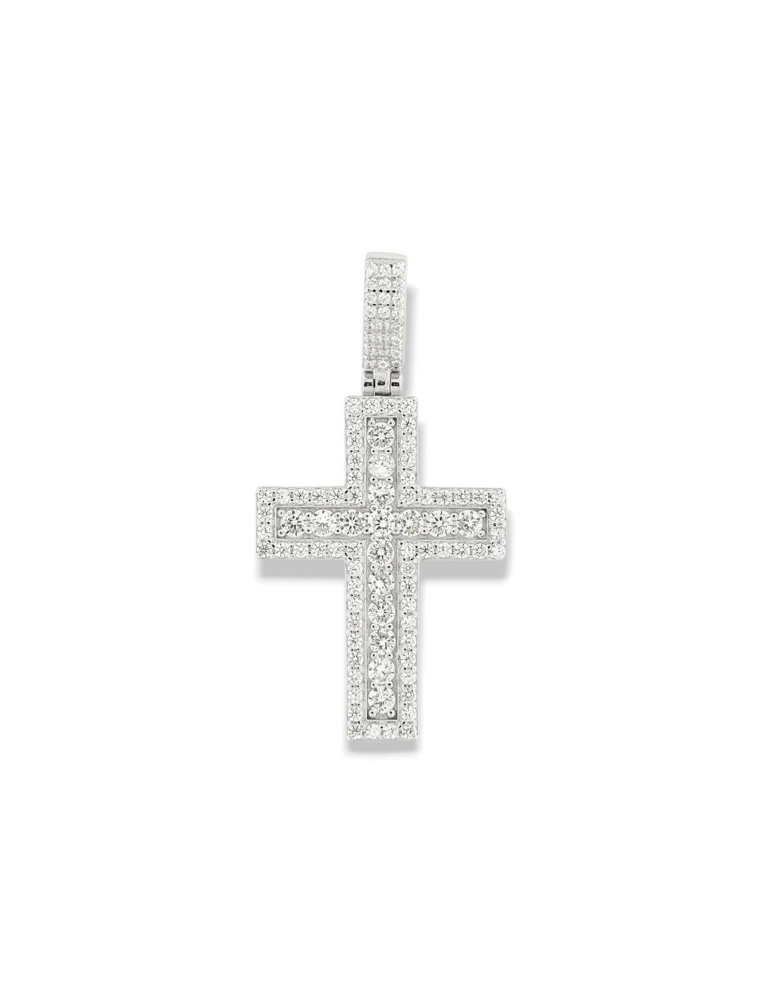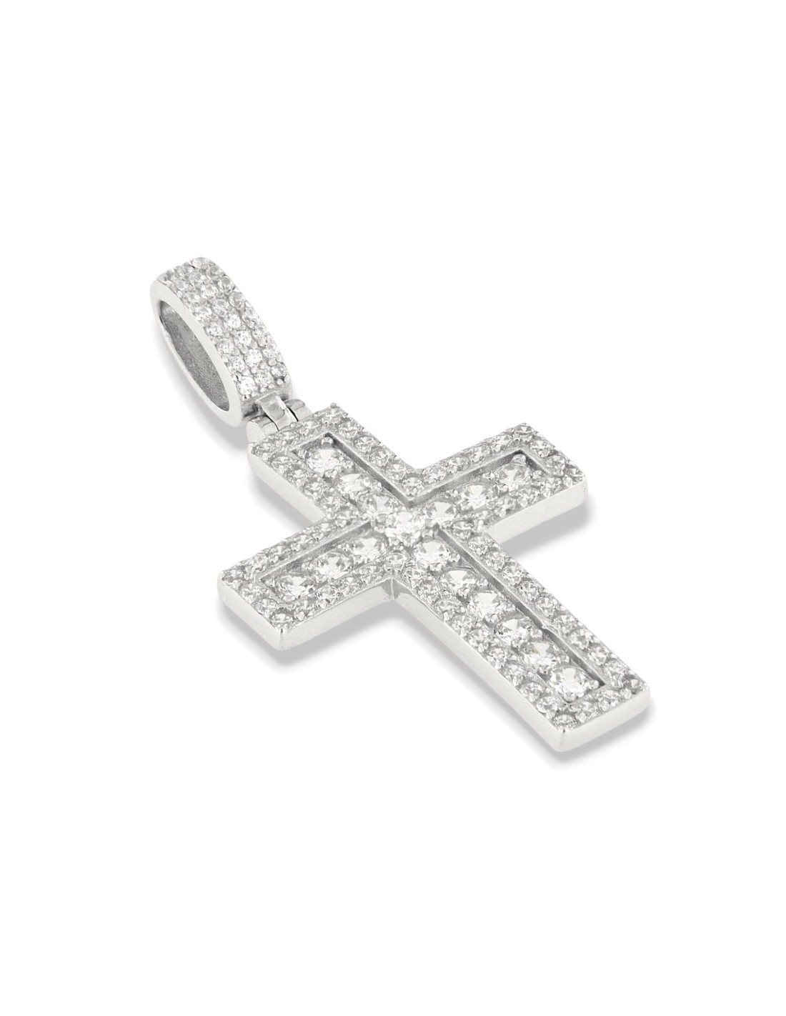 Ciondolo Argento Rodiato Croce Zirconi Contromaglia