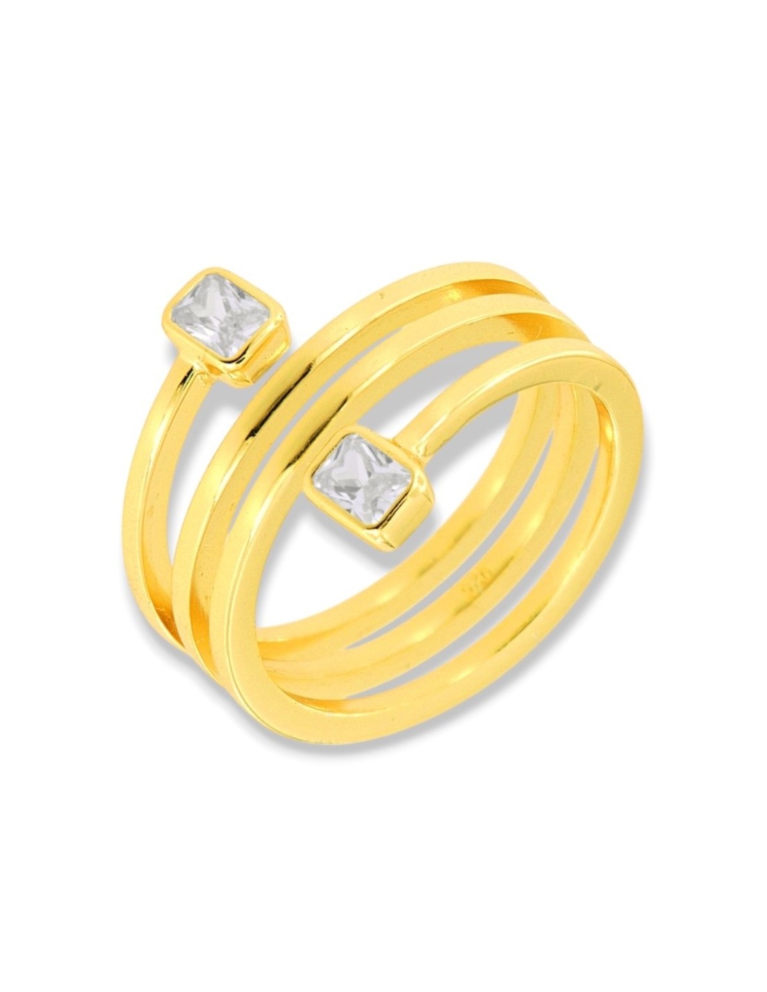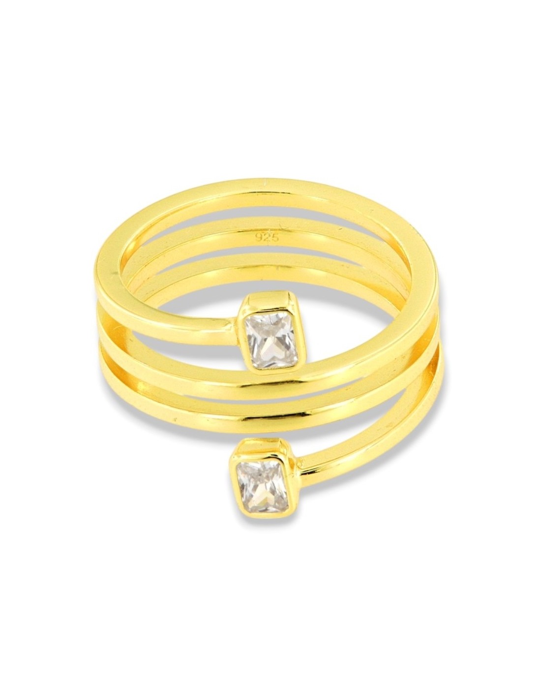 Anello Argento Dorato Intrecciato Zirconi Bianchi