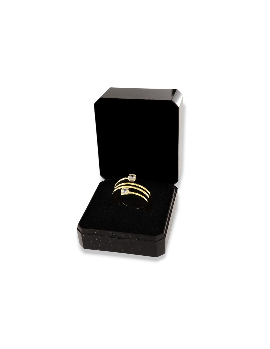 •MATERIALE: l'anello è realizzato interamente in argento 925‰ Dorato (trattamento brillantante contro l'annerimento) caratterizzato dal gambo intrecciato morbido accompagnato da due Zirconia Cubica o CZ bianchi, con taglio di alta qualità simile al taglio Brillante del Diamante;