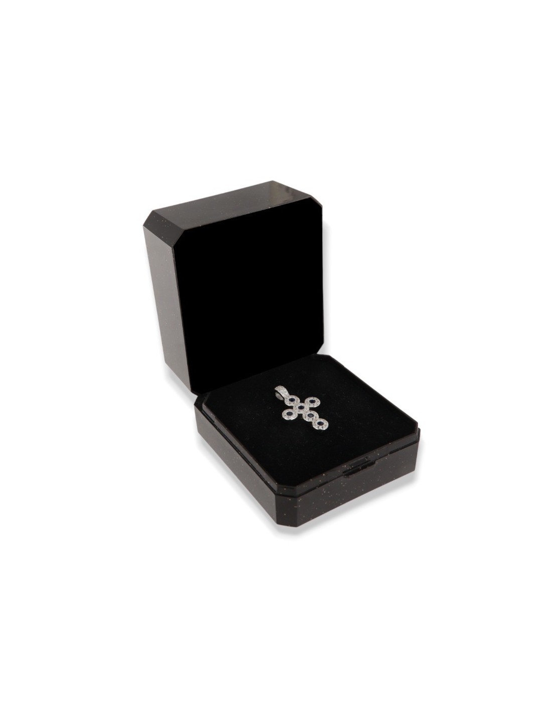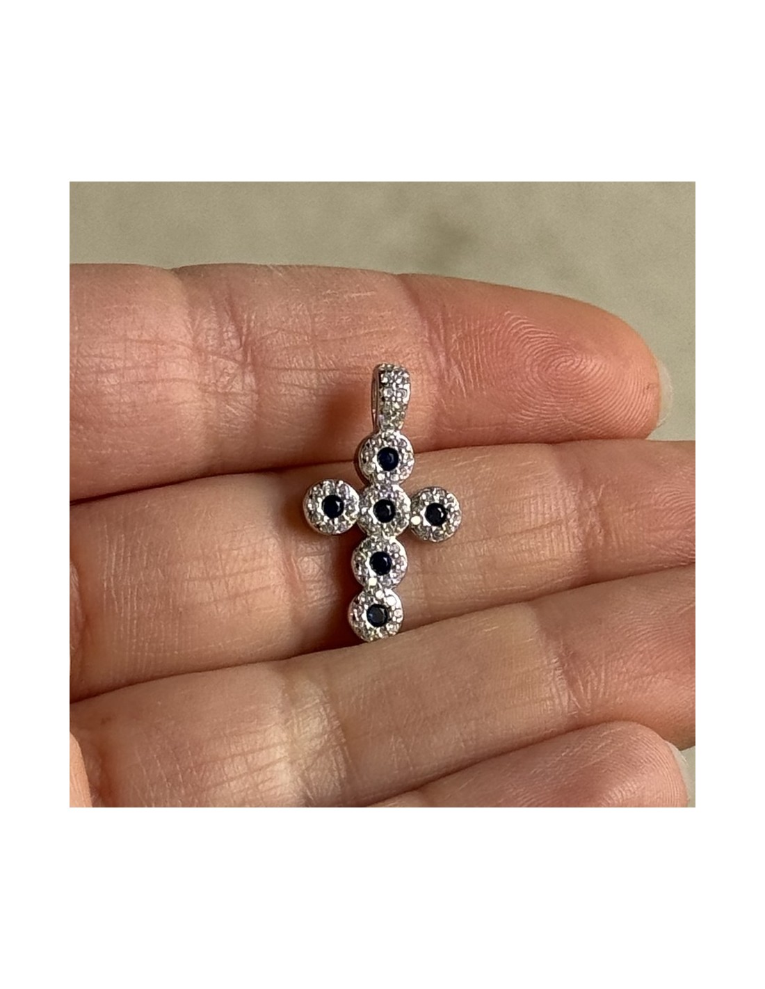•MATERIALE: Il ciondolo è realizzato in argento 925‰ Rodiato (trattamento brillantante contro l'annerimento) rappresentante un crocifisso composto da Zirconia Cubica o CZ bianchi e blu, con taglio di alta qualità simile al taglio Brillante del Diamante;
