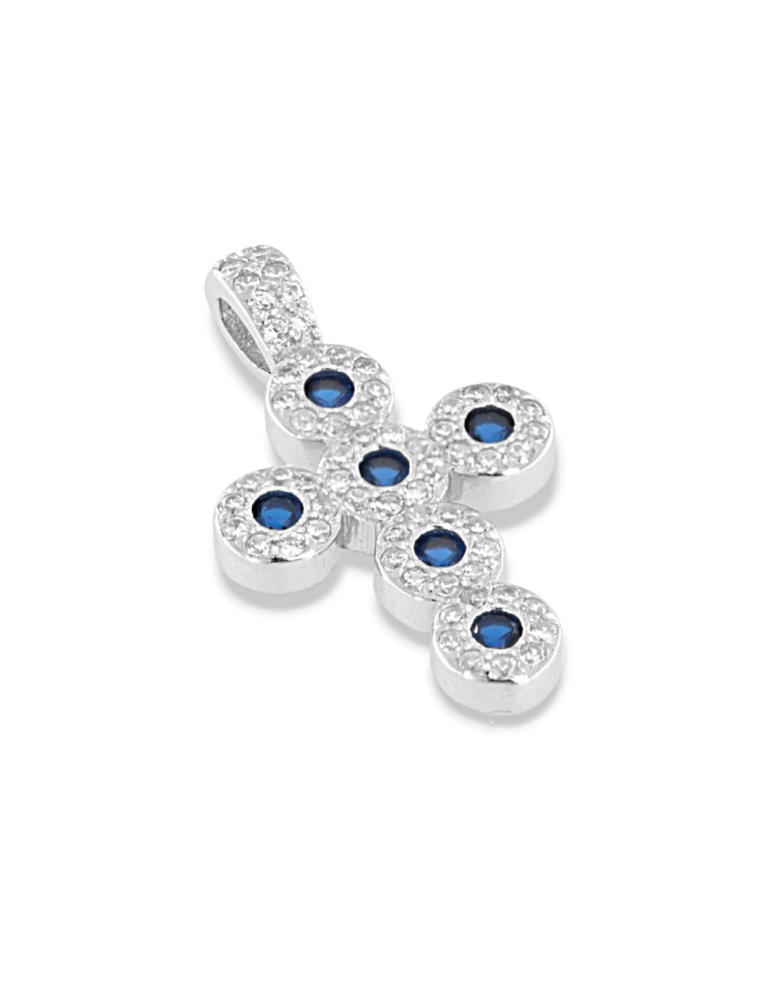 Ciondolo Argento Rodiato Croce Magic Blu E Bianchi