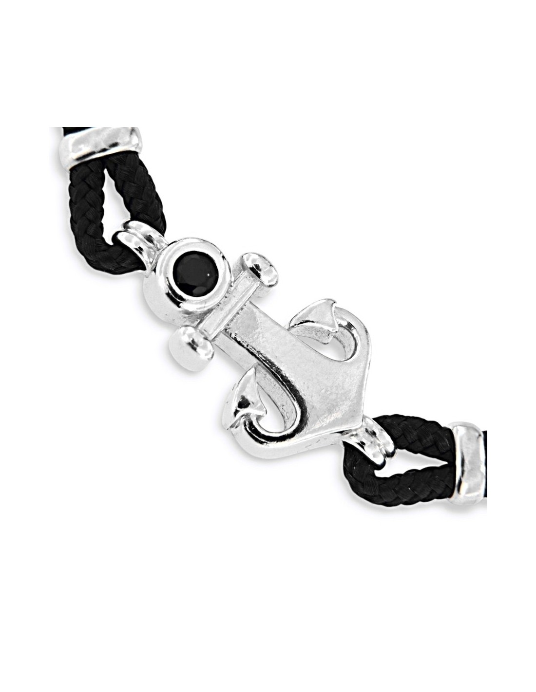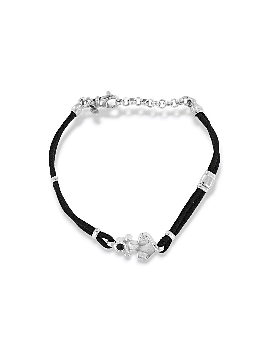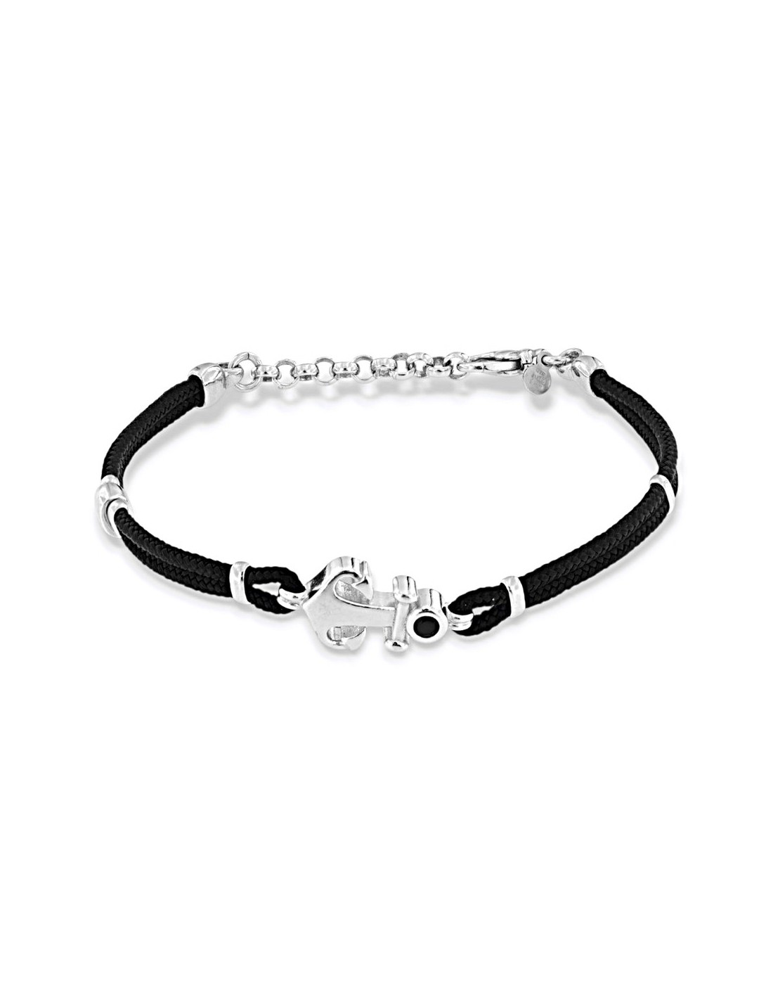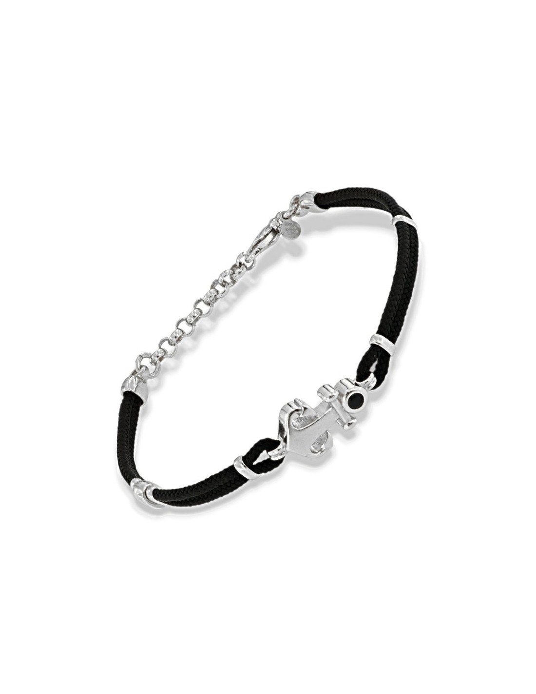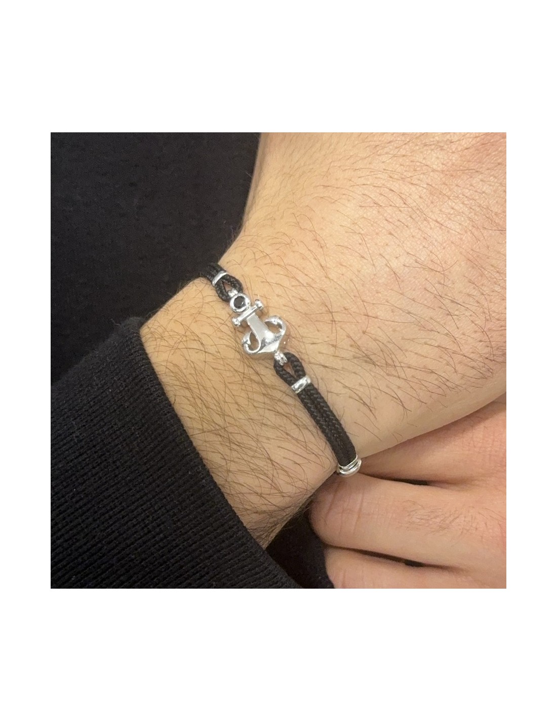 Bracciale Argento Rodiato Ancora Laccio Nero Doppio