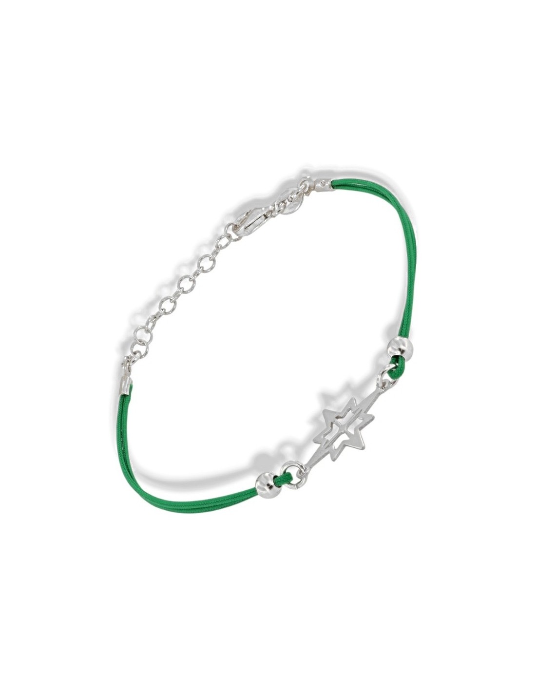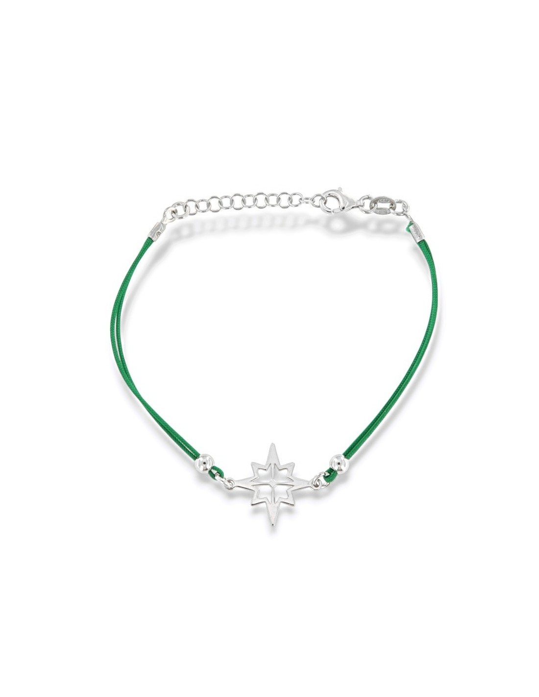 Bracciale Argento Rodiato Rosa Dei Venti Laccio Verde