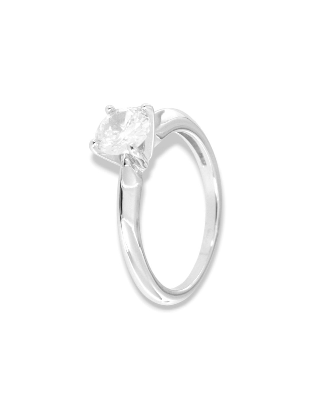 Anello Argento Rodiato Solitario Zircone 6MM