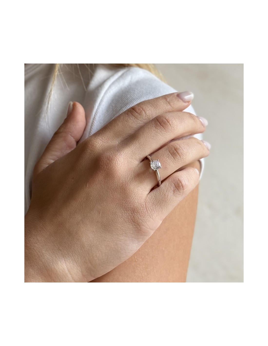 •MATERIALE: l'anello è realizzato interamente in argento 925‰ Rodiato (trattamento brillantante contro l'annerimento) modello solitario composto da un Zirconia Cubica o CZ bianco da 6 millimetri di diametro, con taglio di alta qualità simile al taglio Brillante del Diamante;