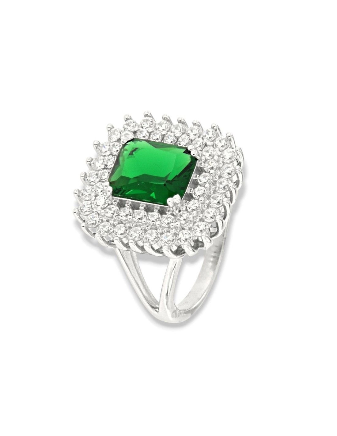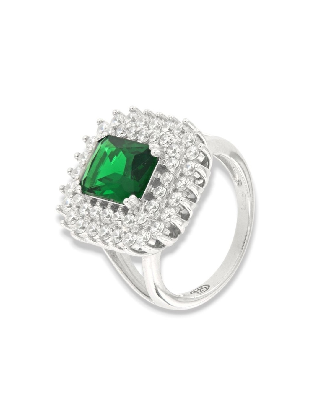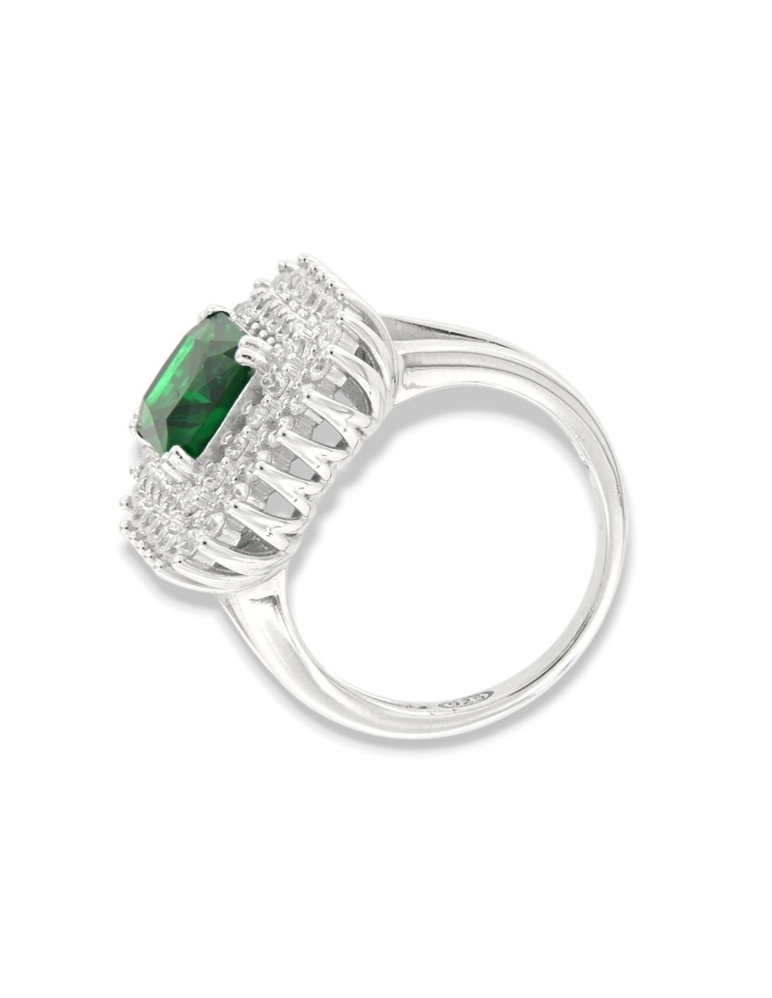 Anello Argento Rodiato Principessa Verde Rettangolare 9X7MM