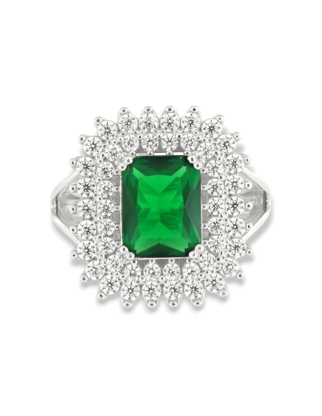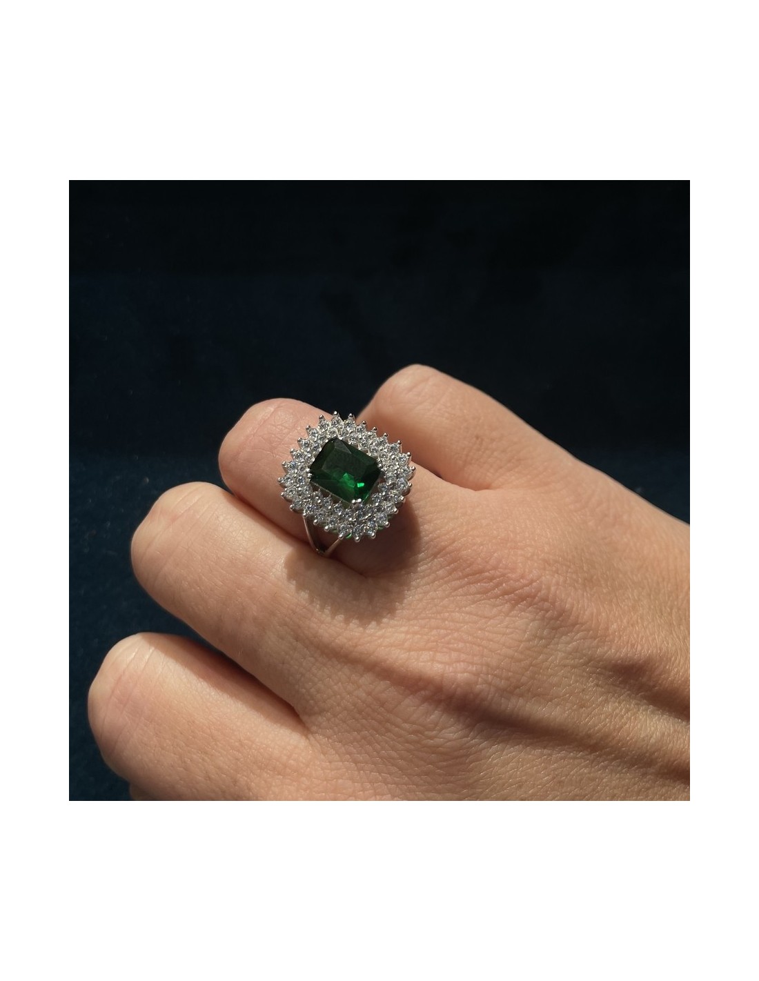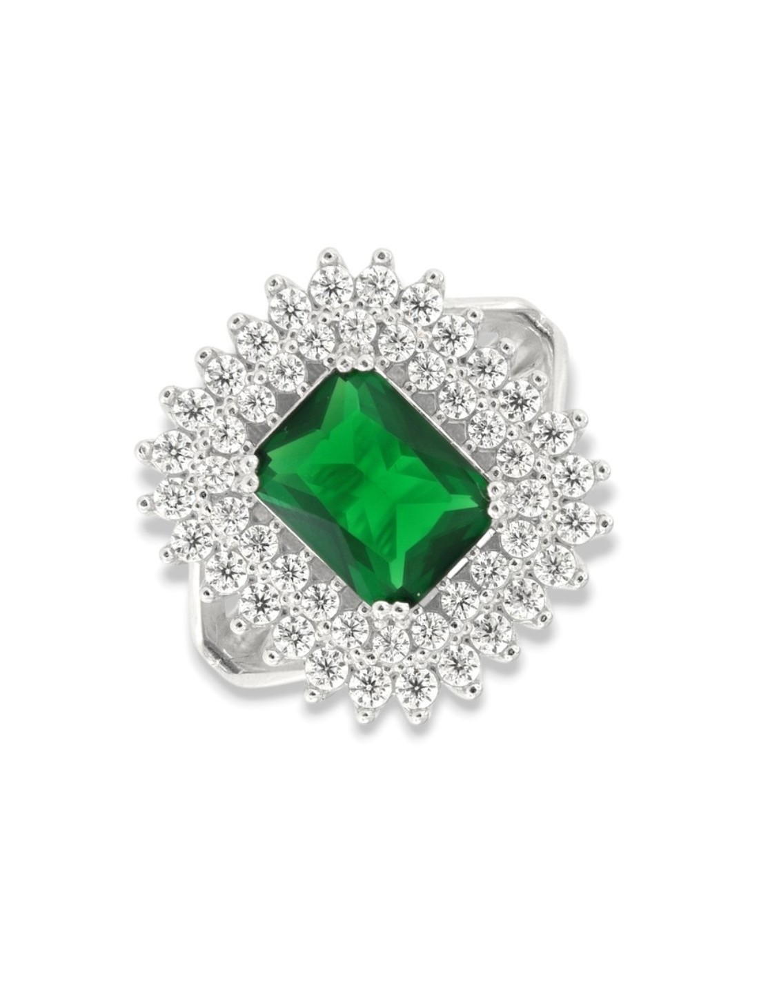 Anello Argento Rodiato Principessa Verde Rettangolare 9X7MM