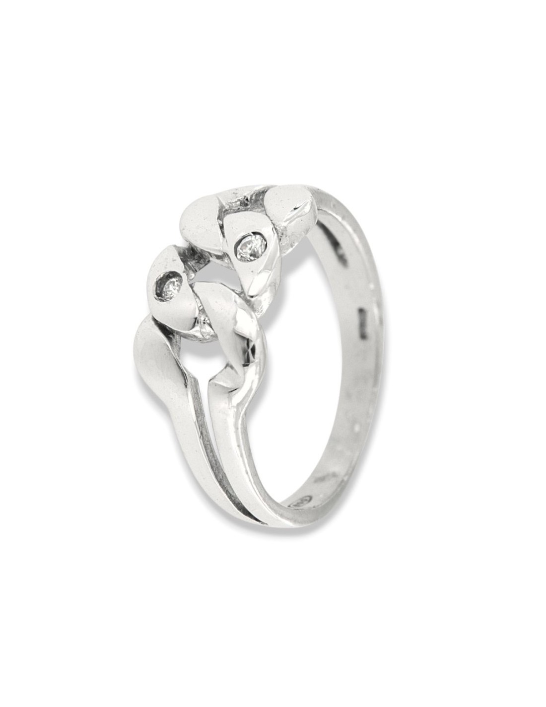 Anello Argento Rodiato Grumetta Zirconi Bianchi