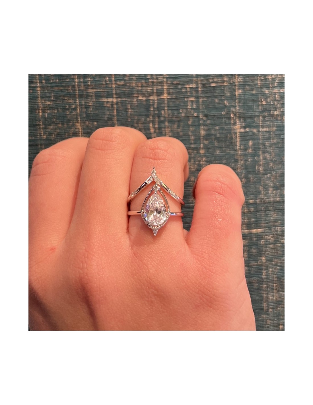 •INCASTONATURA: il montaggio delle pietre CZ sull'anello avviene con castoni a 4 griffe (2 punte condivise per pietra) che la serrano in modo permanente;
