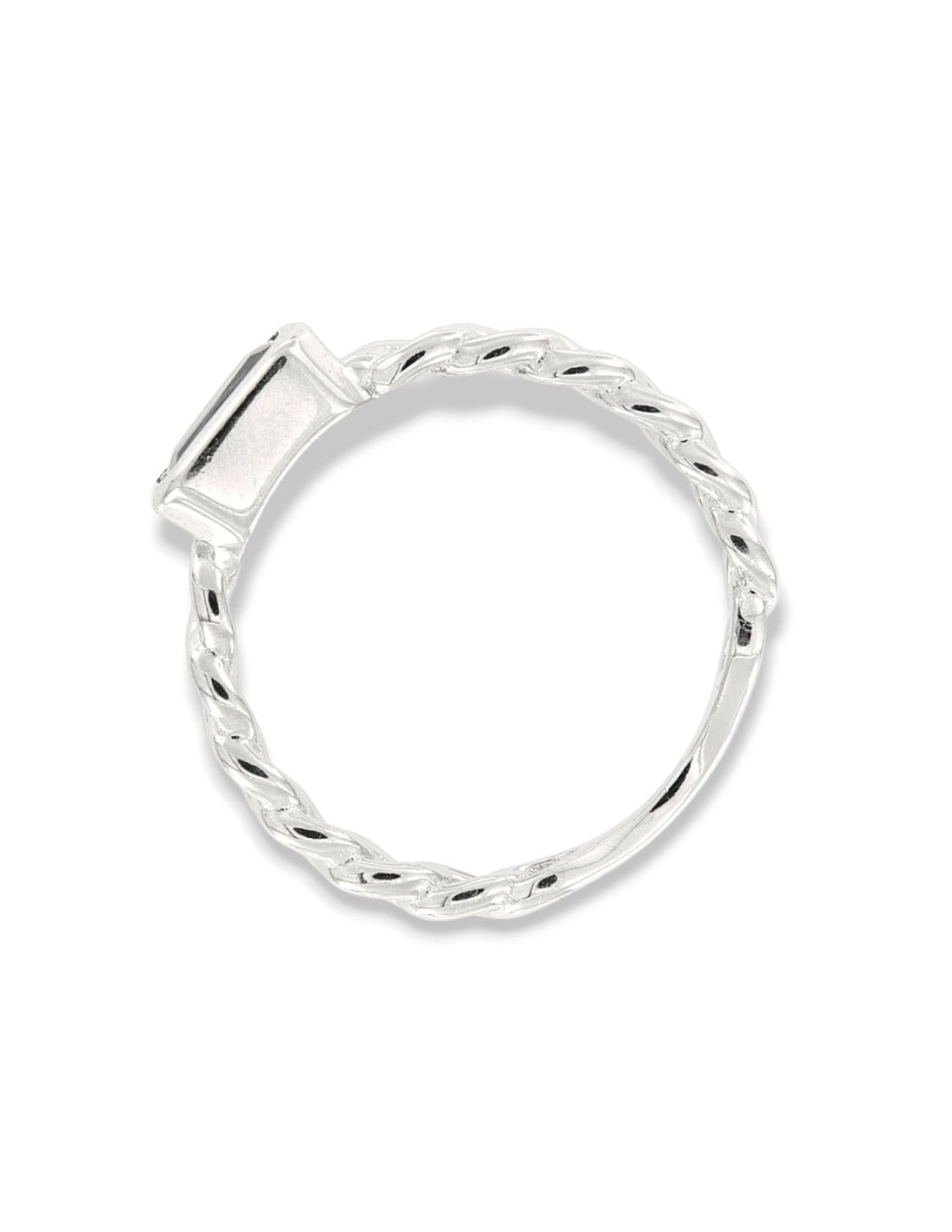 •INCASTONATURA: il montaggio delle pietre CZ sull'anello avviene con castoni a 4 griffe (2 punte condivise per pietra) che la serrano in modo permanente;