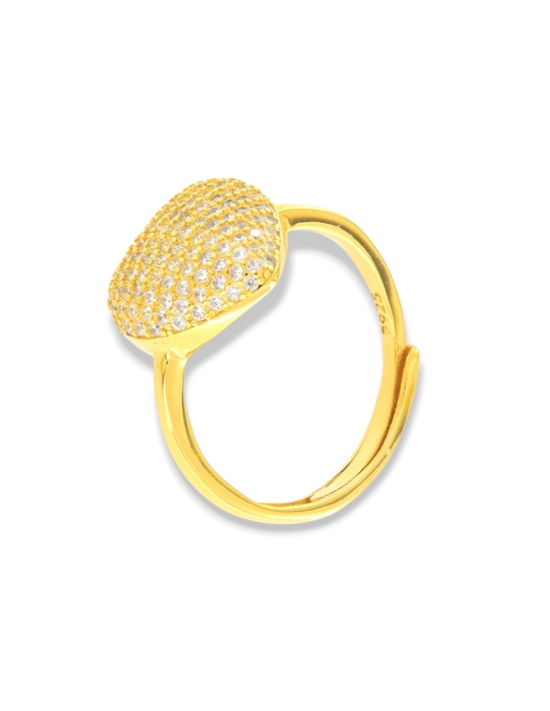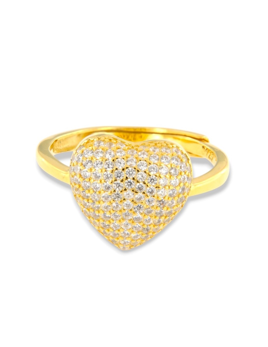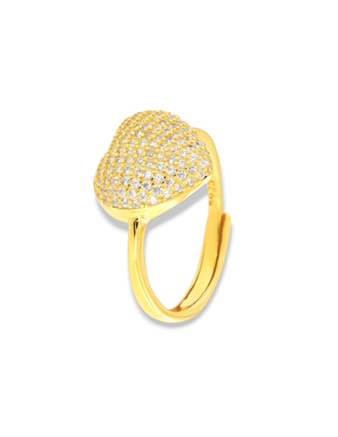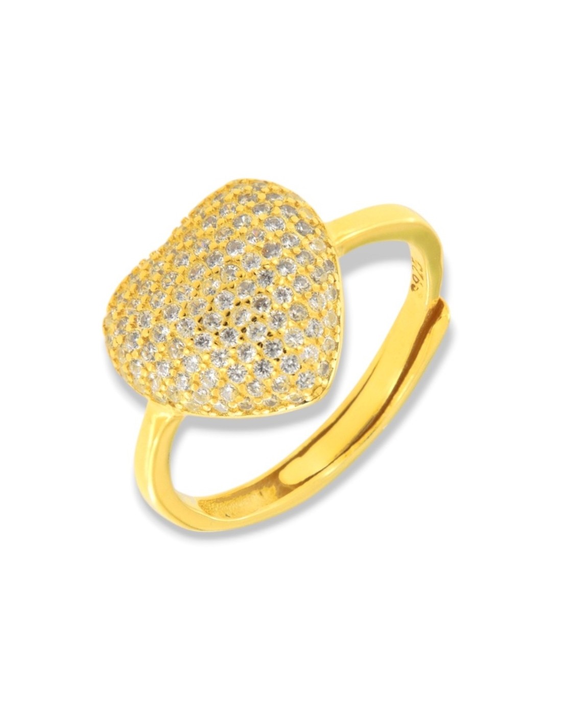 Anello Argento Dorato Cuore Pavettato Zirconi Bianchi