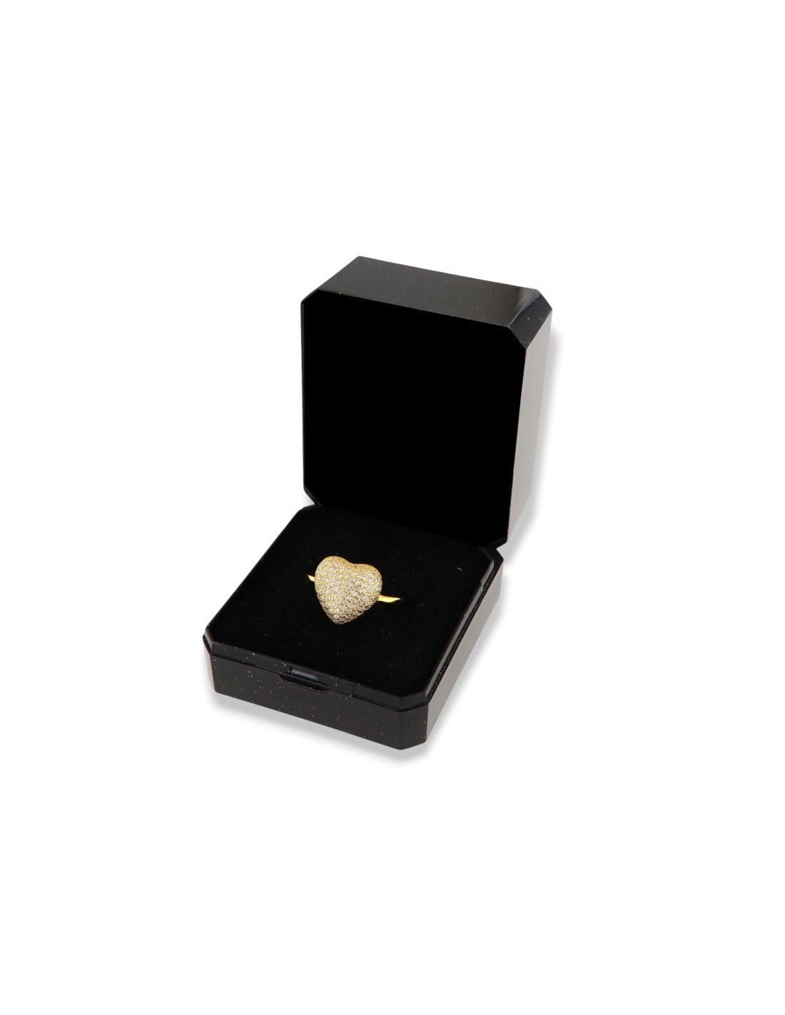 •MATERIALE: l'anello è realizzato interamente in argento 925‰ Dorato (trattamento brillantante contro l'annerimento) a forma di cuore pavettato da Zirconia Cubica o pietre CZ bianche, con taglio di alta qualità simile al taglio Brillante del Diamante;