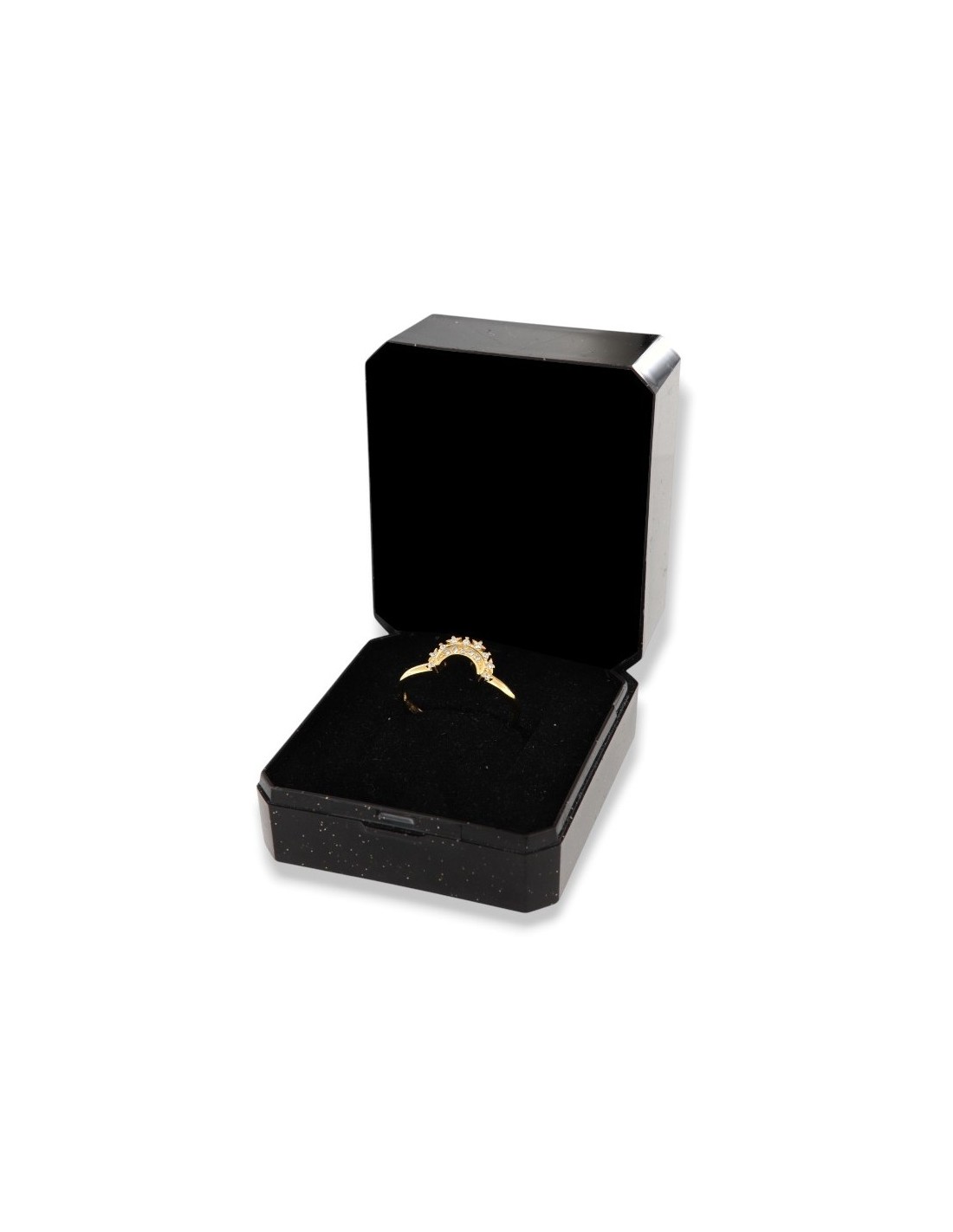 •INCASTONATURA: il montaggio delle pietre CZ sull'anello avviene con castoni a 4 griffe (2 punte condivise per pietra) che la serrano in modo permanente;