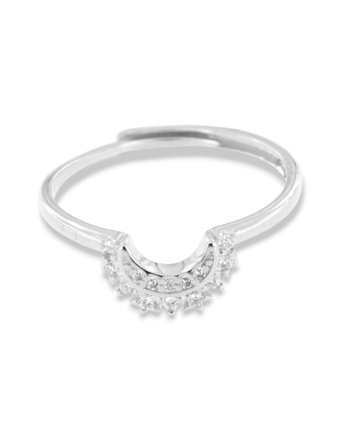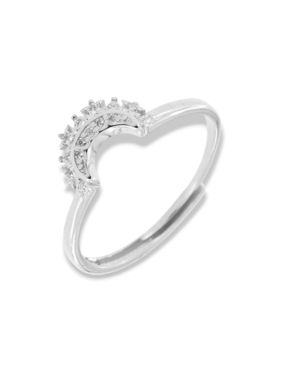 Anello Argento Rodiato Componibile Luna Zirconi Bianchi