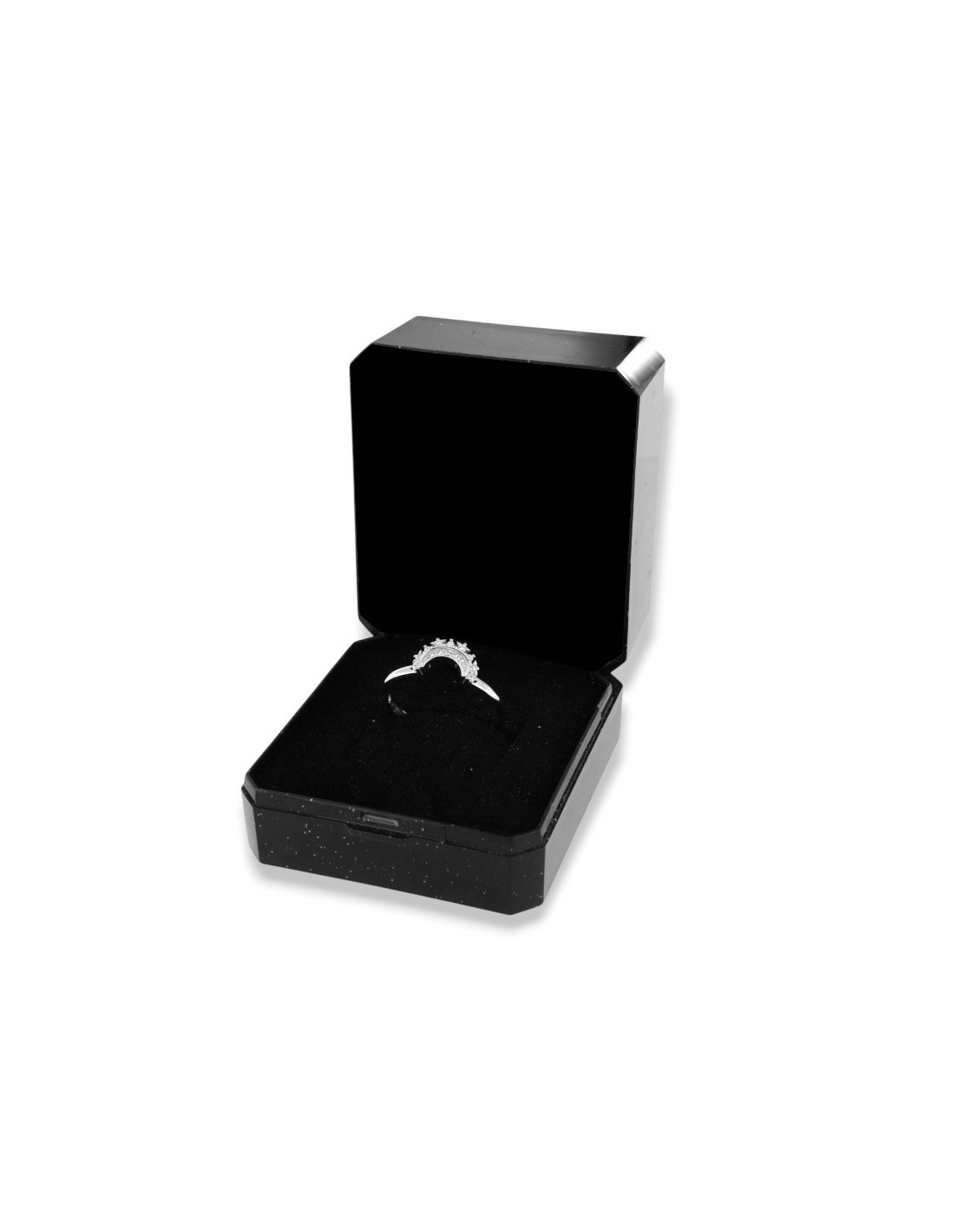 •INCASTONATURA: il montaggio delle pietre CZ sull'anello avviene con castoni a 4 griffe (2 punte condivise per pietra) che la serrano in modo permanente;