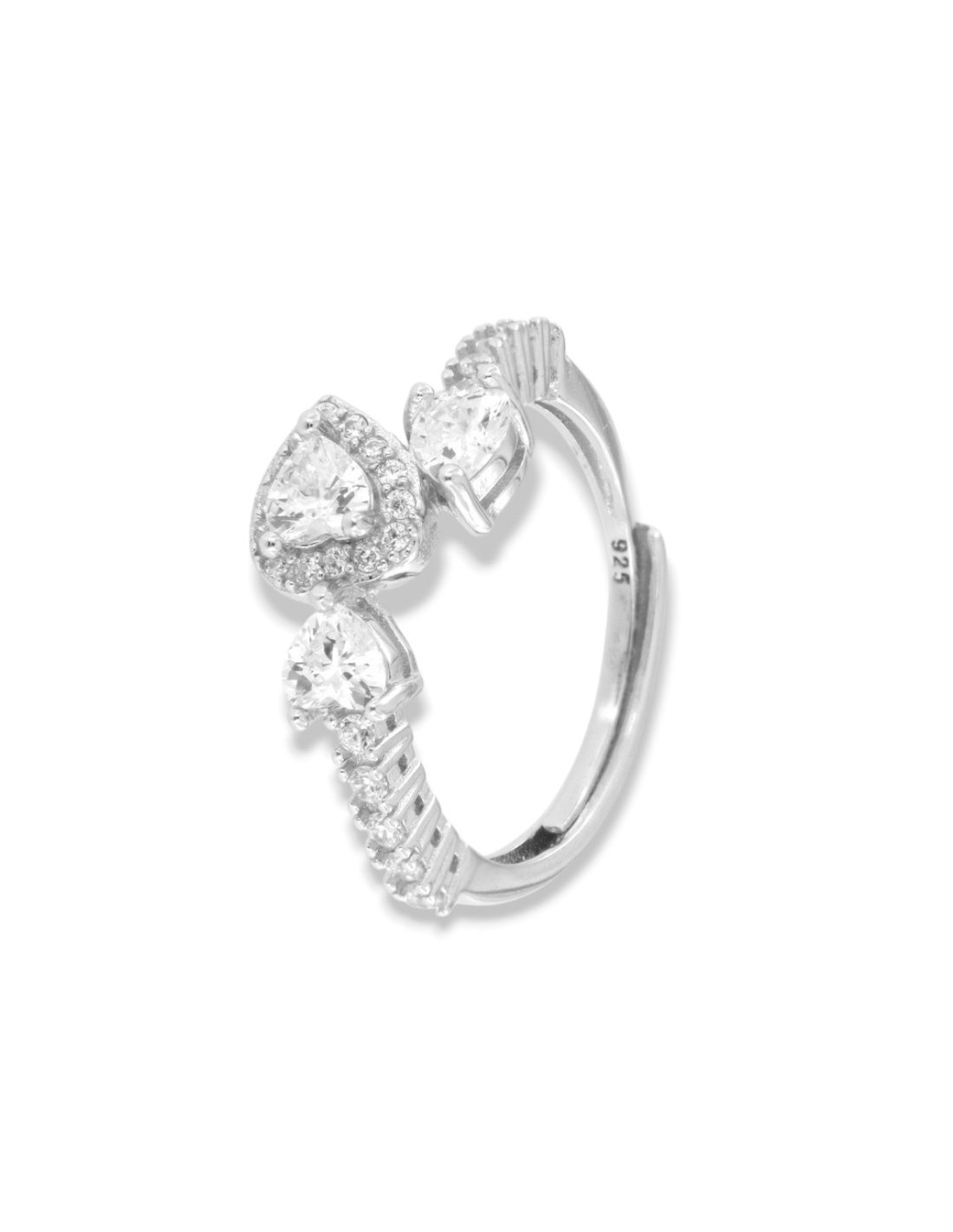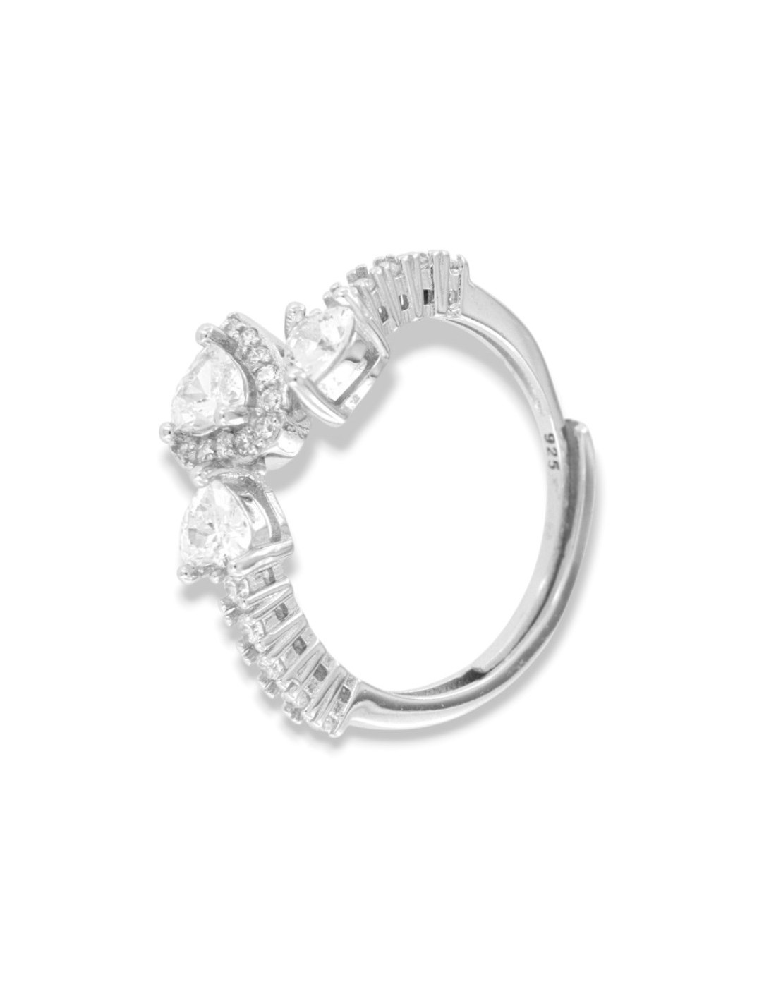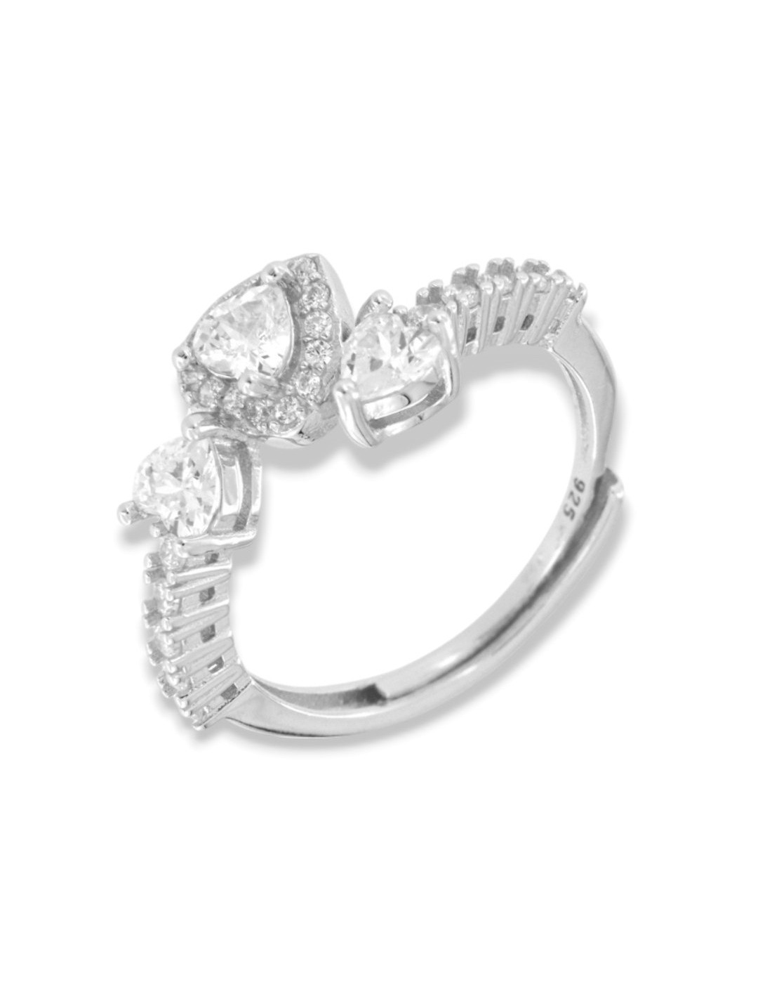 Anello Argento Rodiato Cuori Zirconi Bianchi
