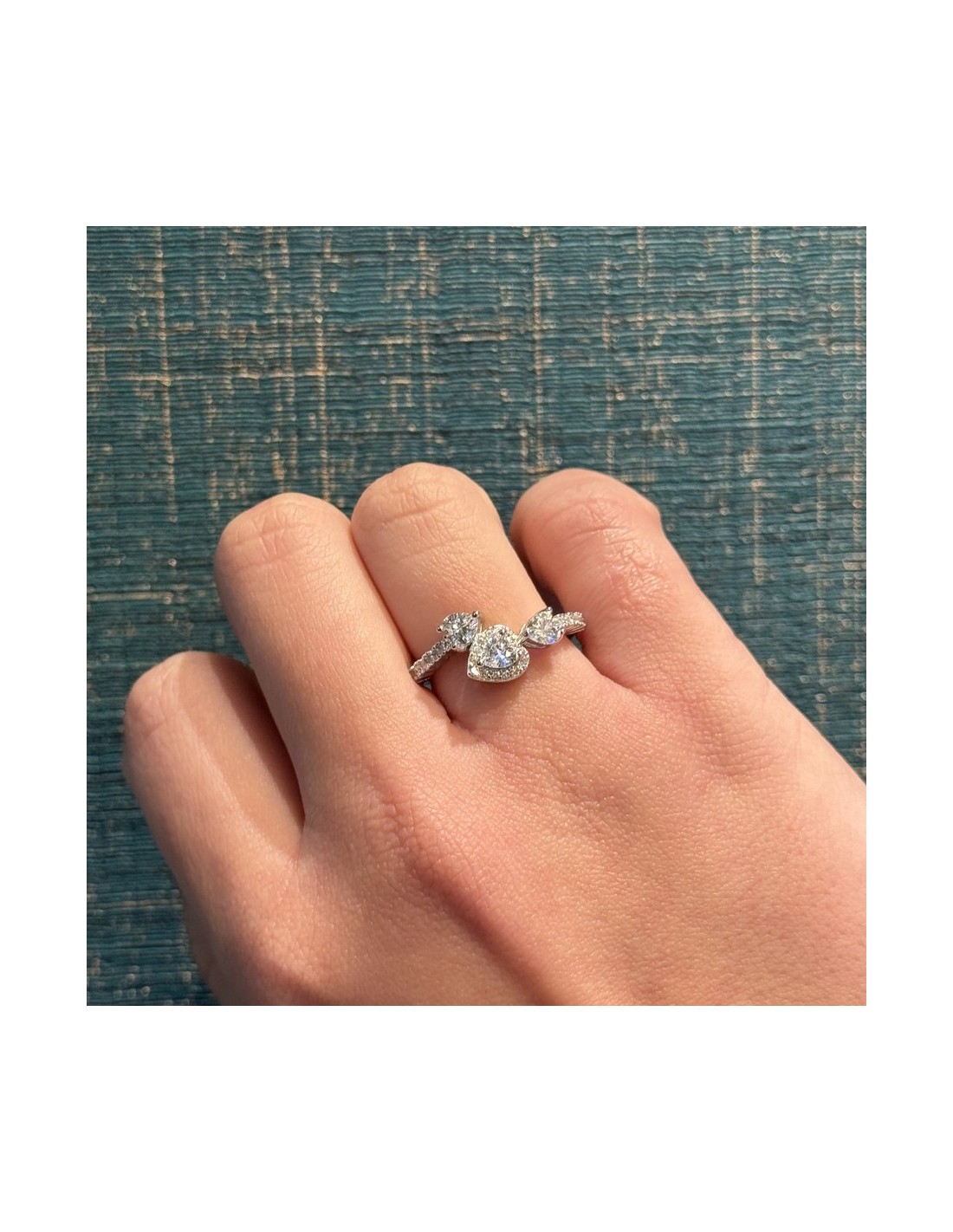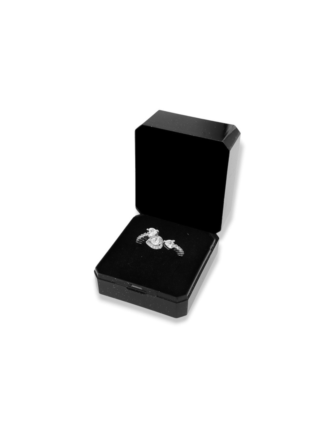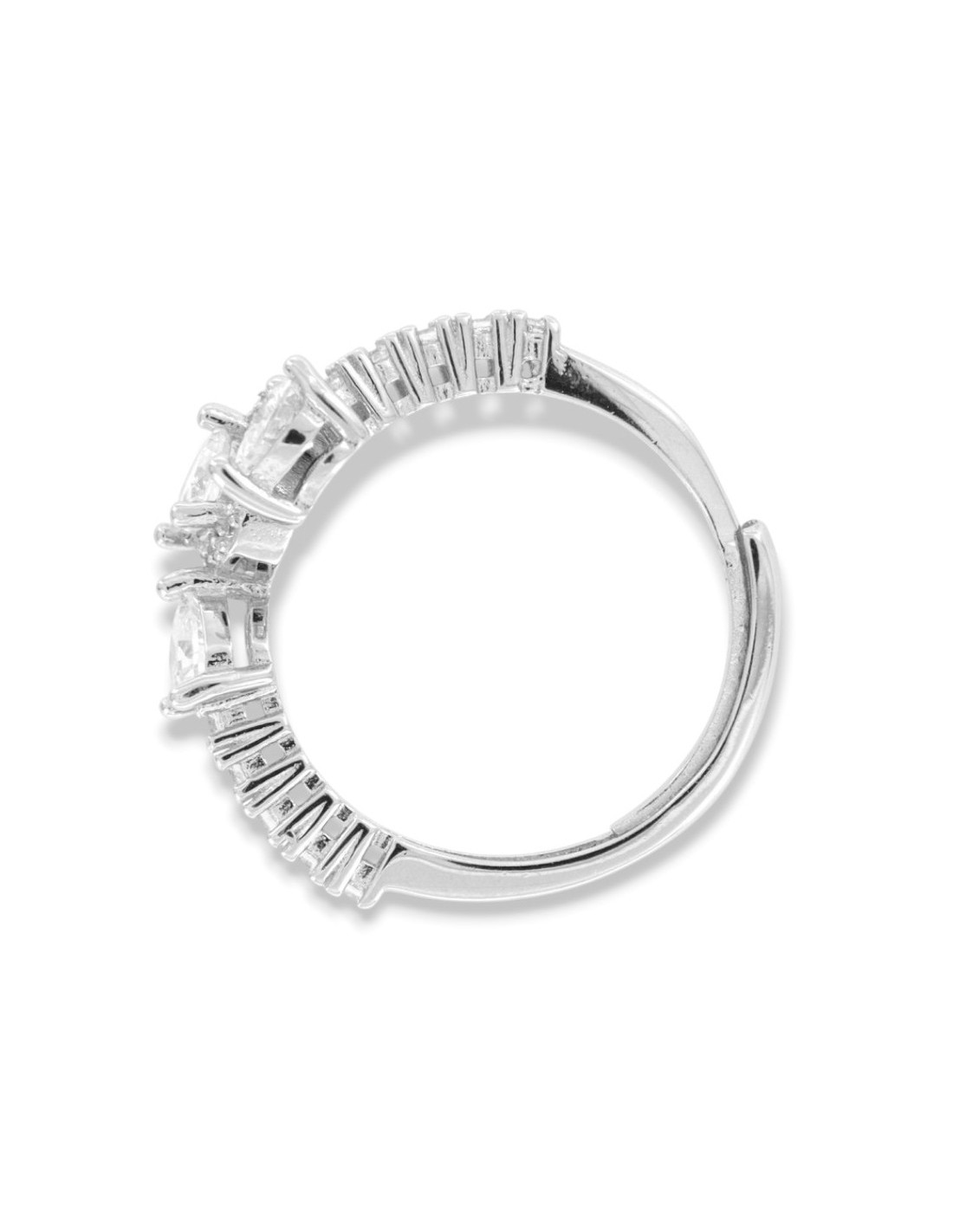 Anello Argento Rodiato Cuori Zirconi Bianchi