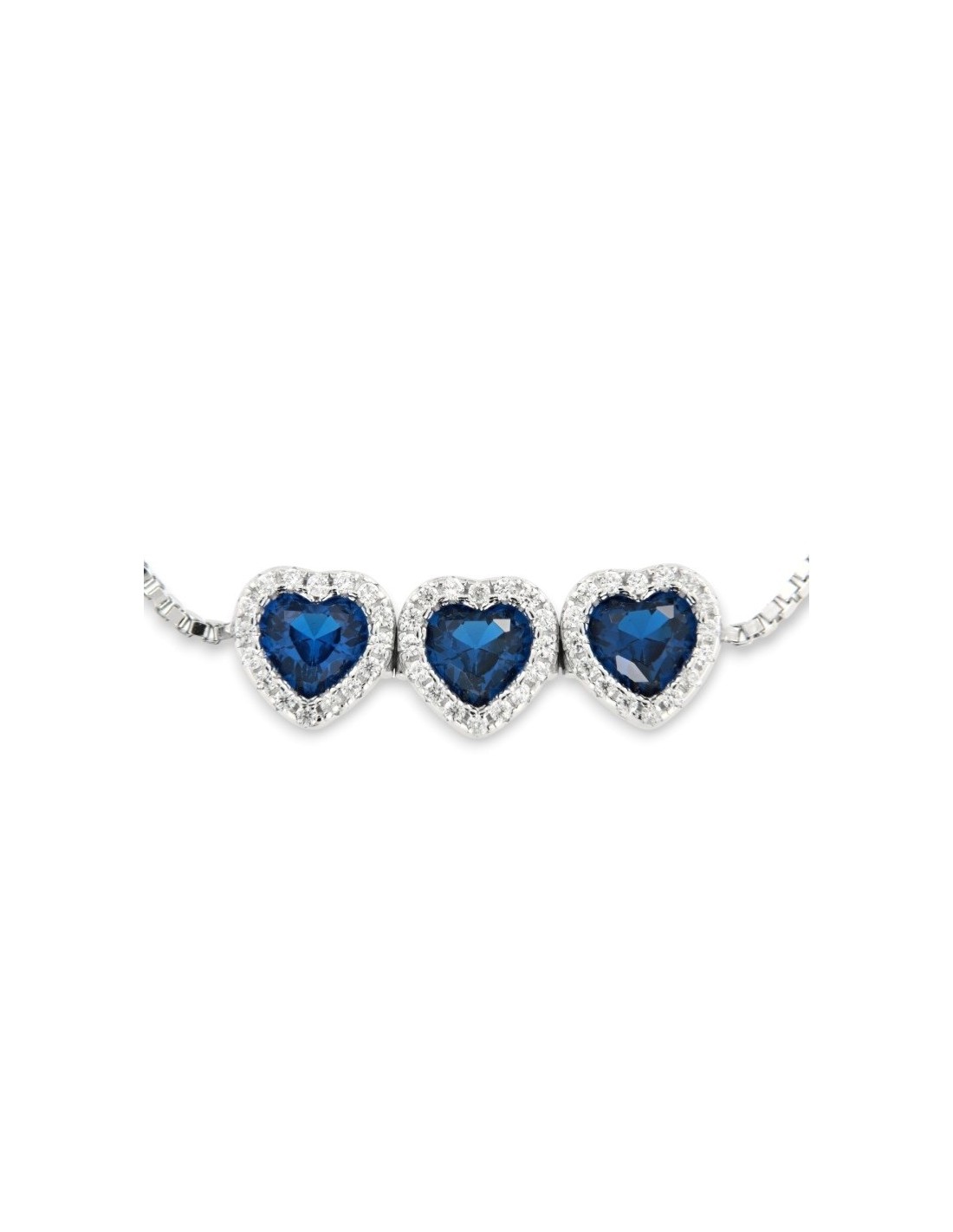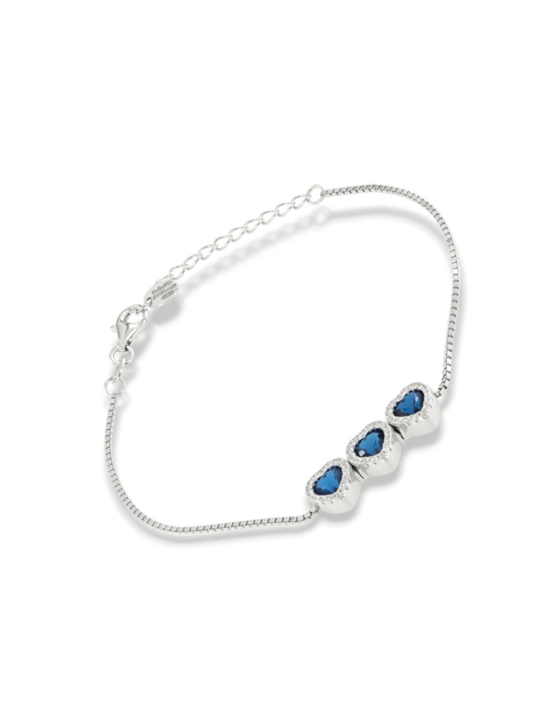Bracciale Argento Rodiato Cuori Blu