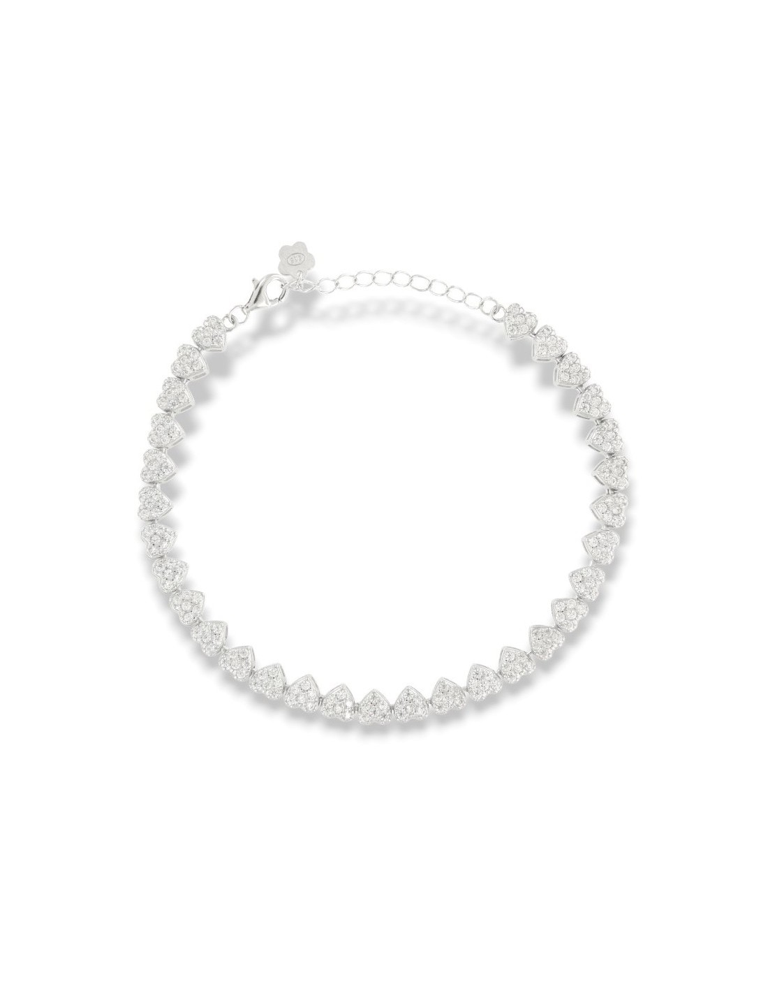 •MATERIALE: il bracciale è realizzato interamente in argento 925‰ Rodiato (trattamento brillantante contro l'annerimento) caratterizzato dall'insieme di cuori pavettati da Zirconia Cubica o pietre CZ bianche, con taglio di alta qualità simile al taglio Brillante del Diamante;