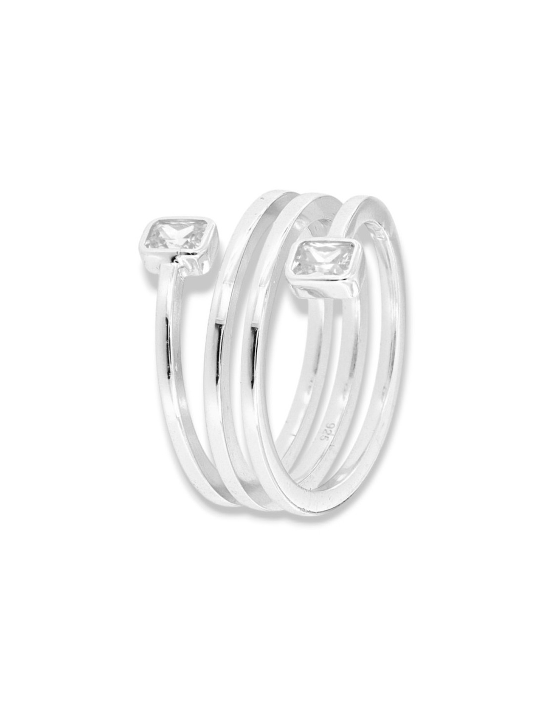 •MATERIALE: l'anello è realizzato interamente in argento 925‰ Rodiato (trattamento brillantante contro l'annerimento) caratterizzato dal gambo intrecciato morbido accompagnato da due Zirconia Cubica o CZ bianchi, con taglio di alta qualità simile al taglio Brillante del Diamante;