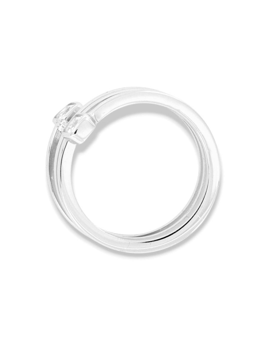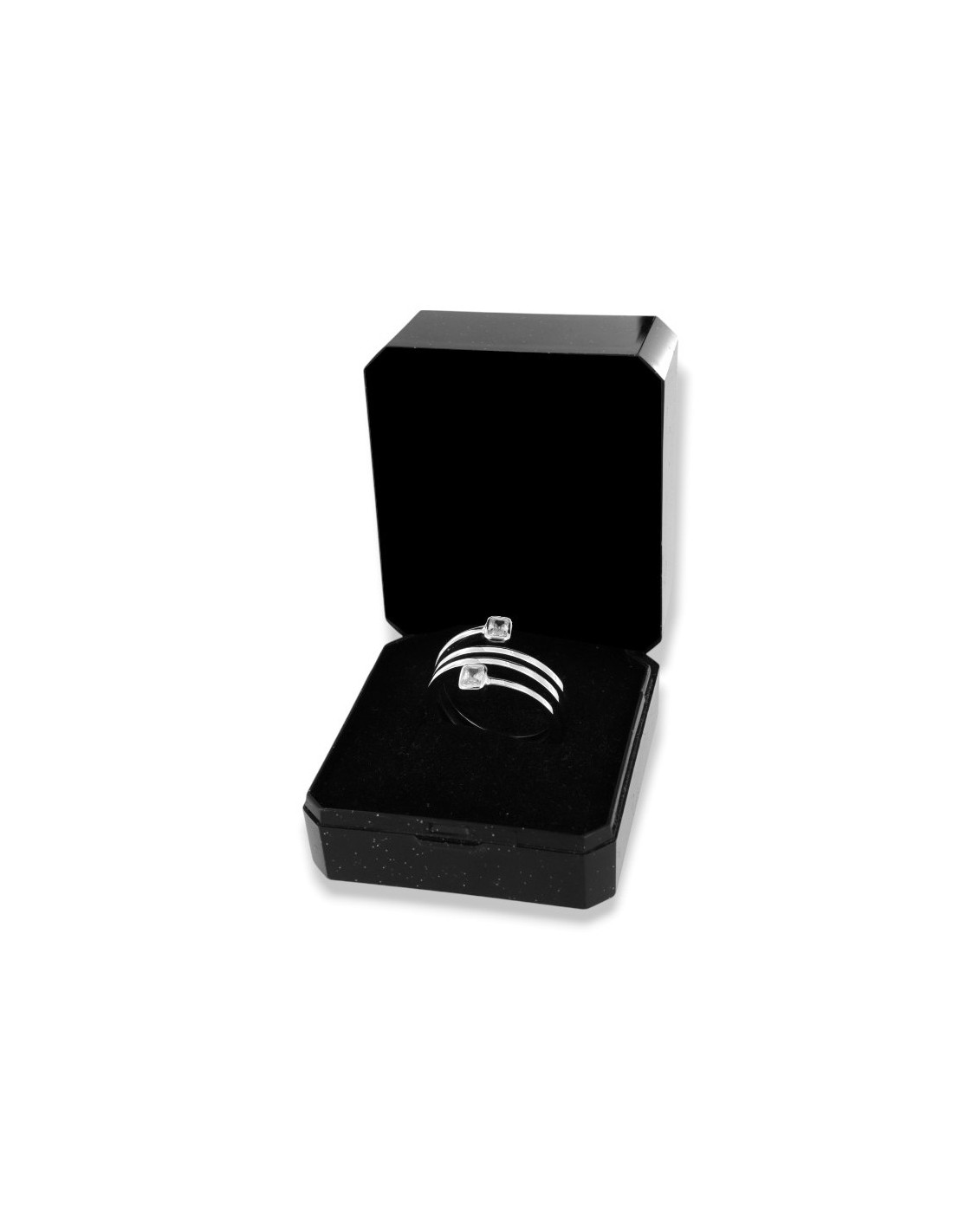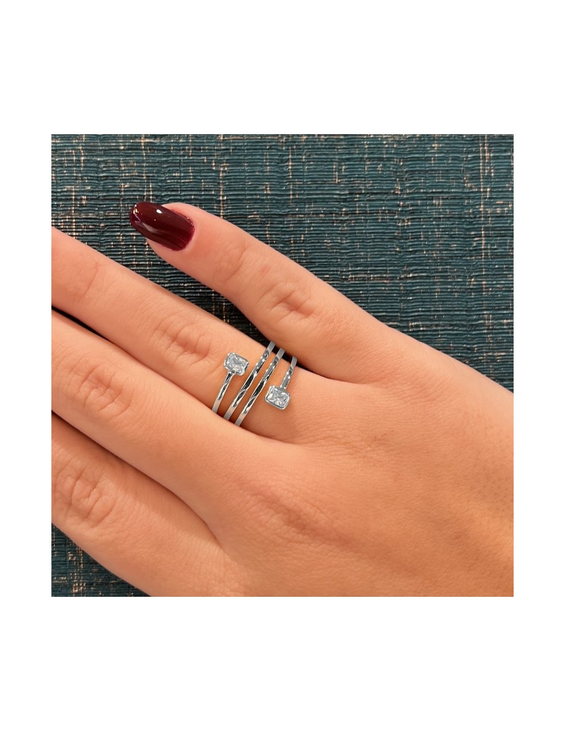 •INCASTONATURA: il montaggio delle pietre CZ sull'anello avviene con castoni a 4 griffe (2 punte condivise per pietra) che la serrano in modo permanente;