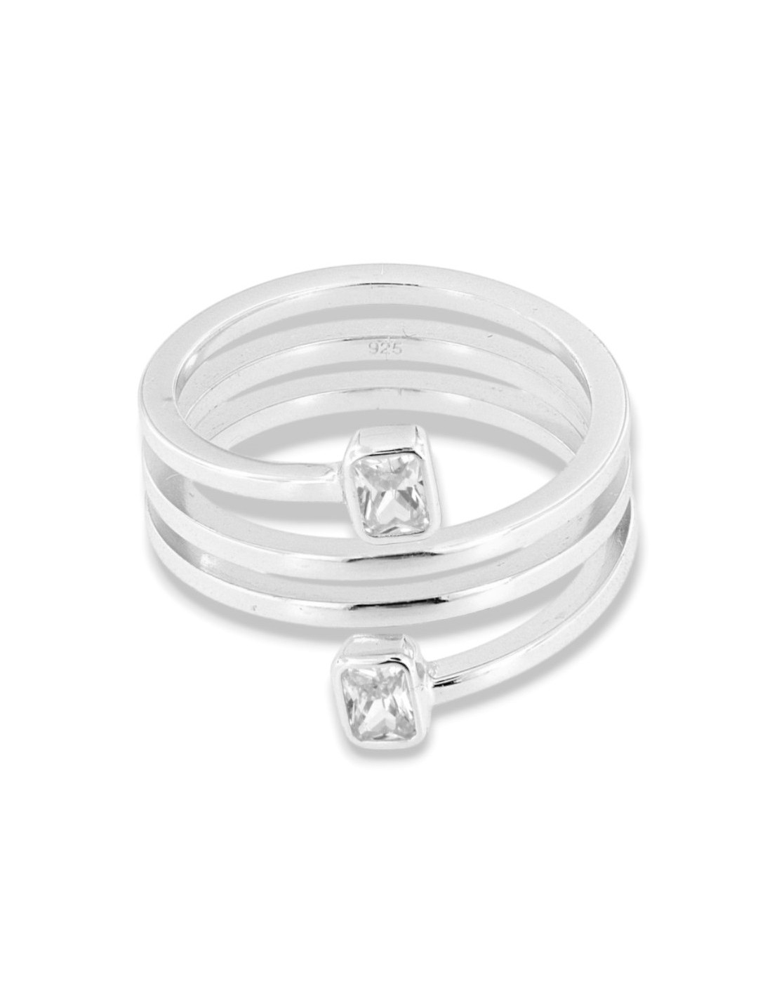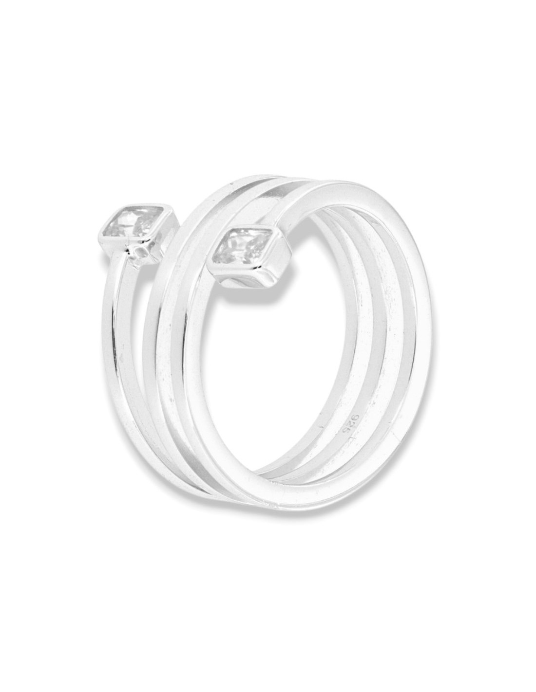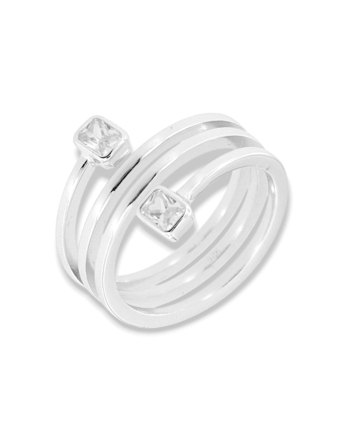 Anello Argento Rodiato Intrecciato Zirconi Bianchi