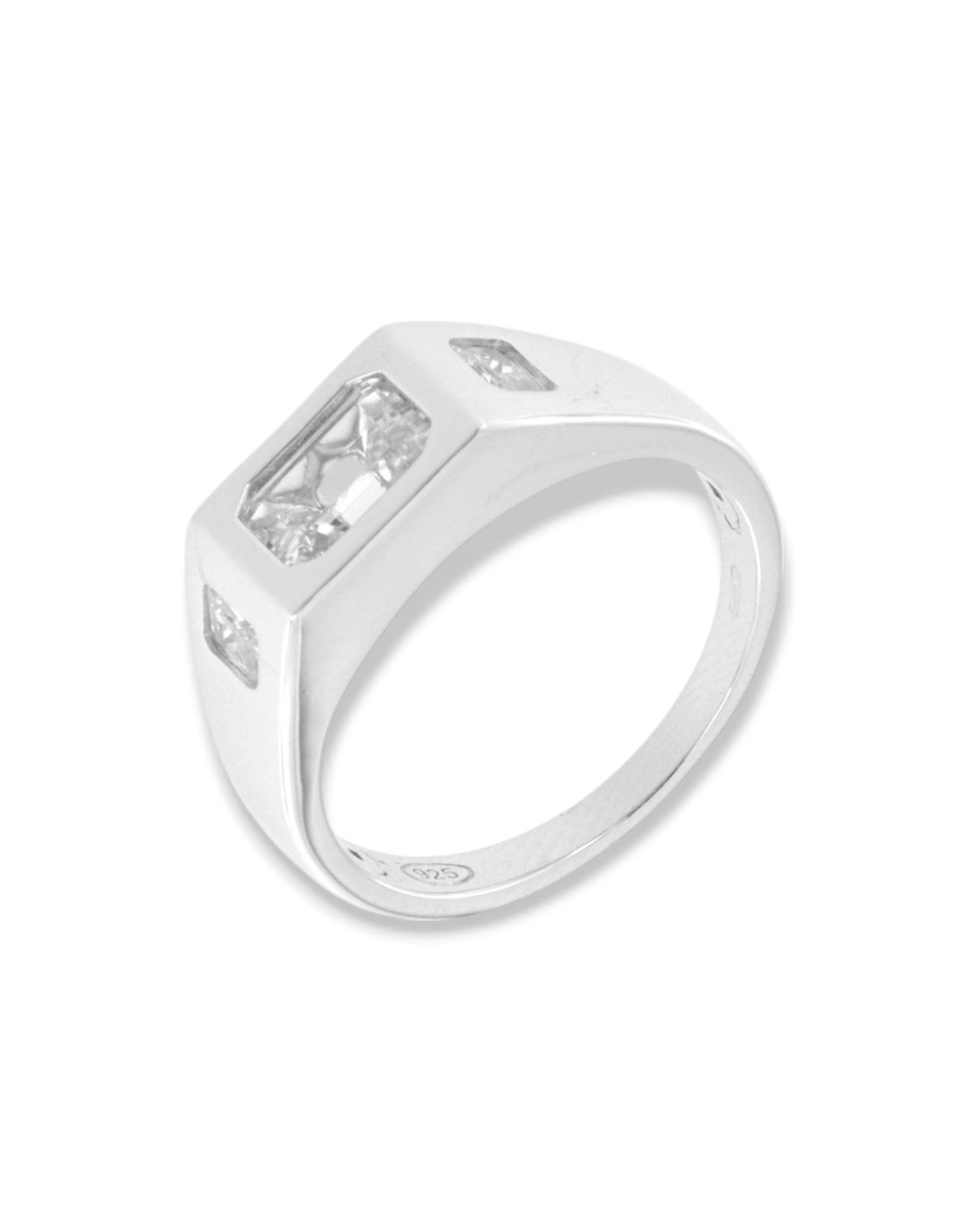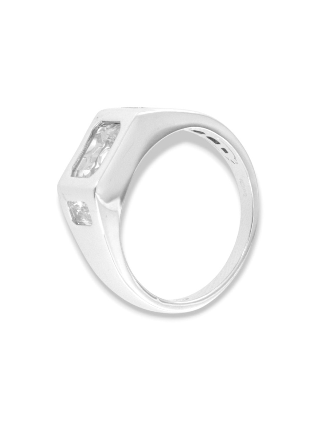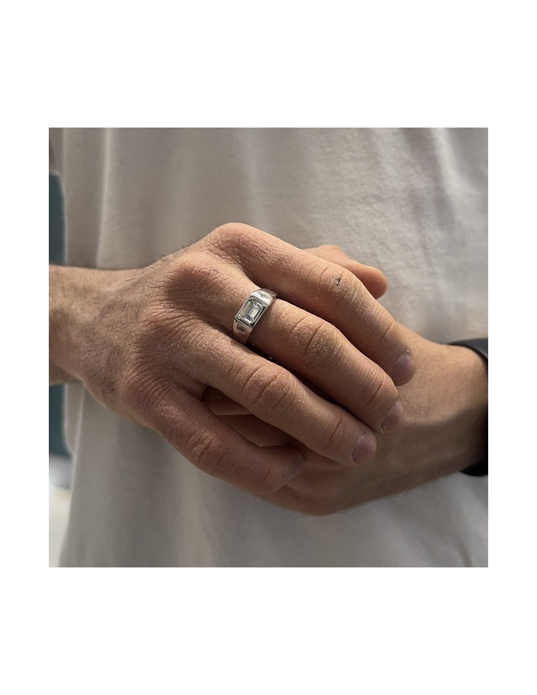 •MATERIALE: l'anello è realizzato interamente in argento 925‰ Rodiato (trattamento brillantante contro l'annerimento) modello chevalier con Zirconia Cubica o pietre CZ bianche, con taglio di alta qualità simile al taglio Brillante del Diamante;