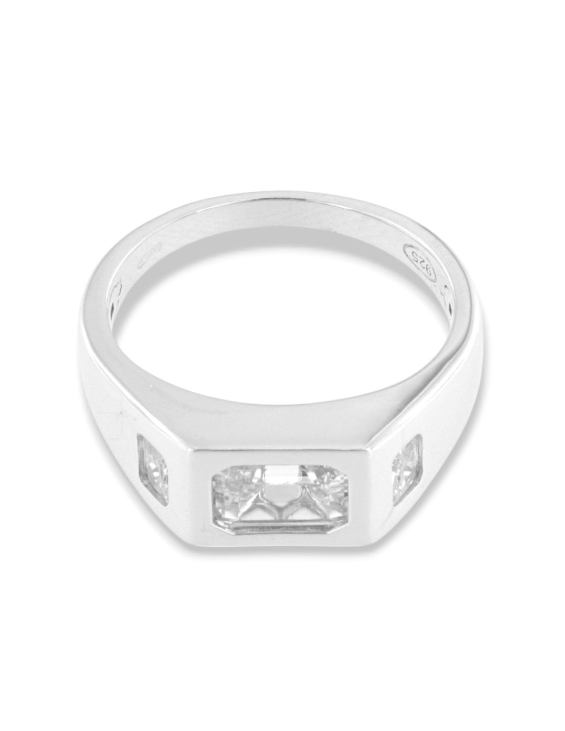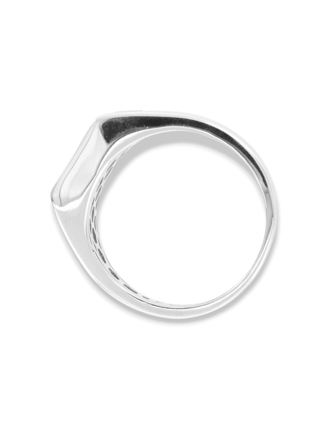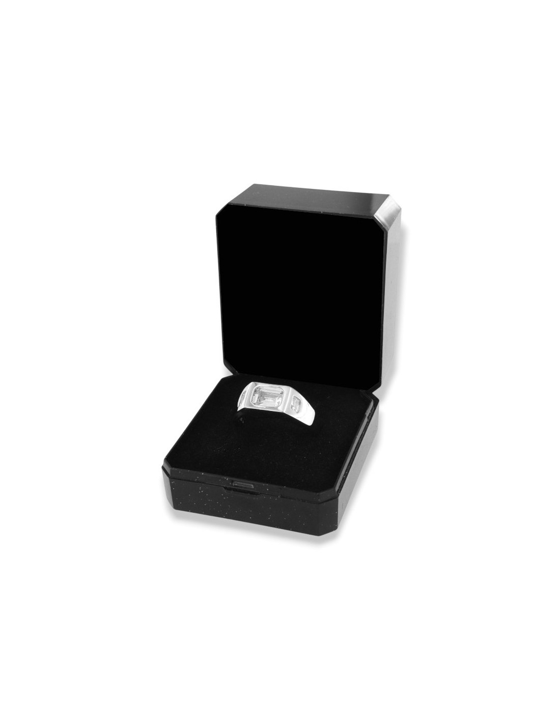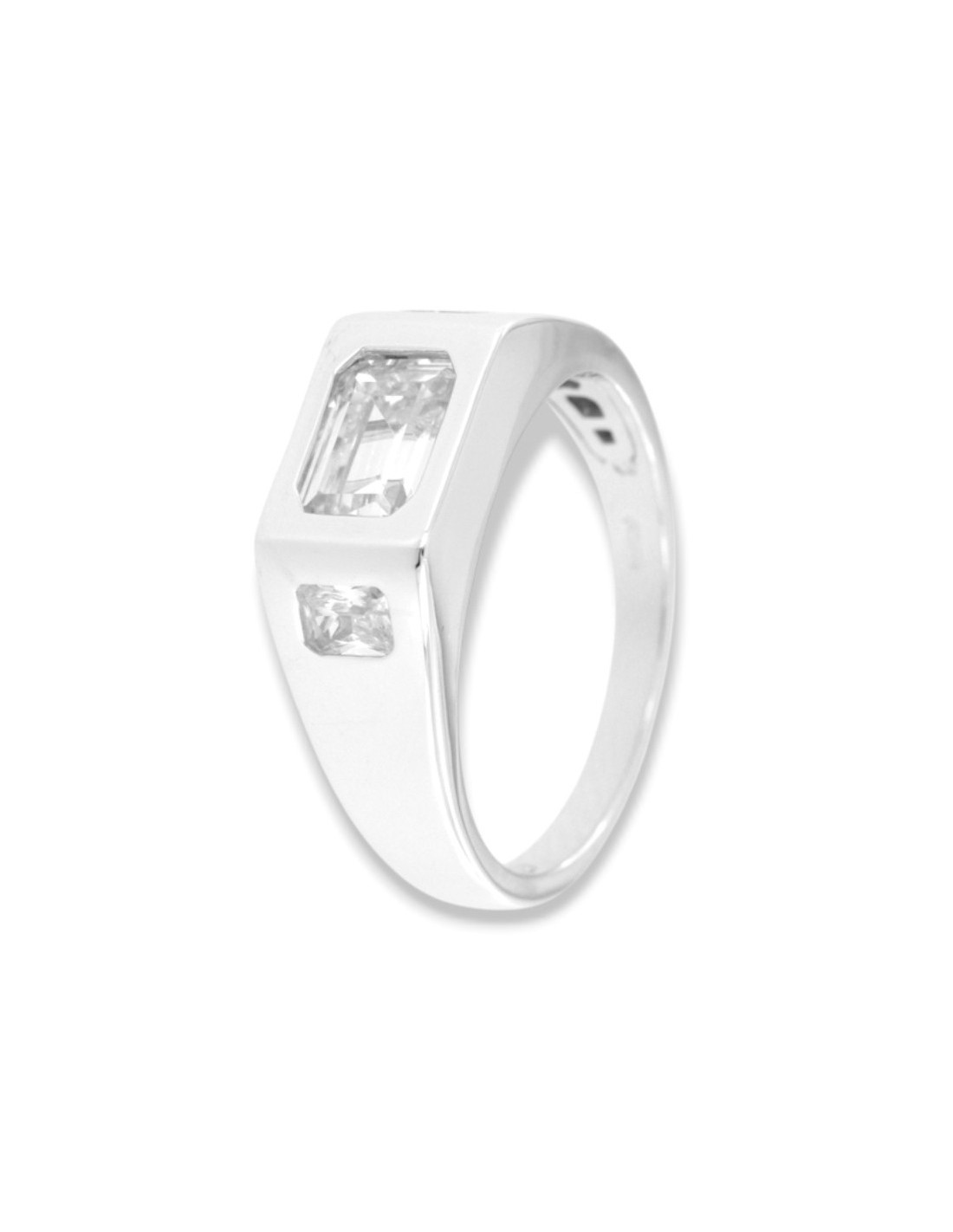 •MATERIALE: l'anello è realizzato interamente in argento 925‰ Rodiato (trattamento brillantante contro l'annerimento) modello chevalier con Zirconia Cubica o pietre CZ bianche, con taglio di alta qualità simile al taglio Brillante del Diamante;