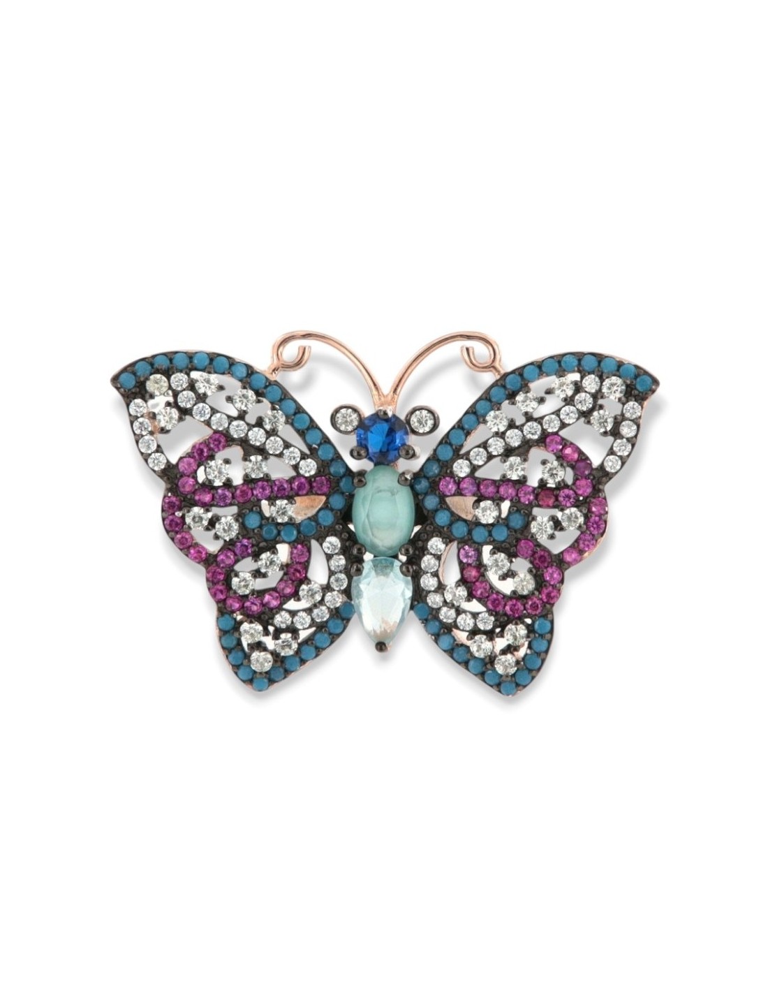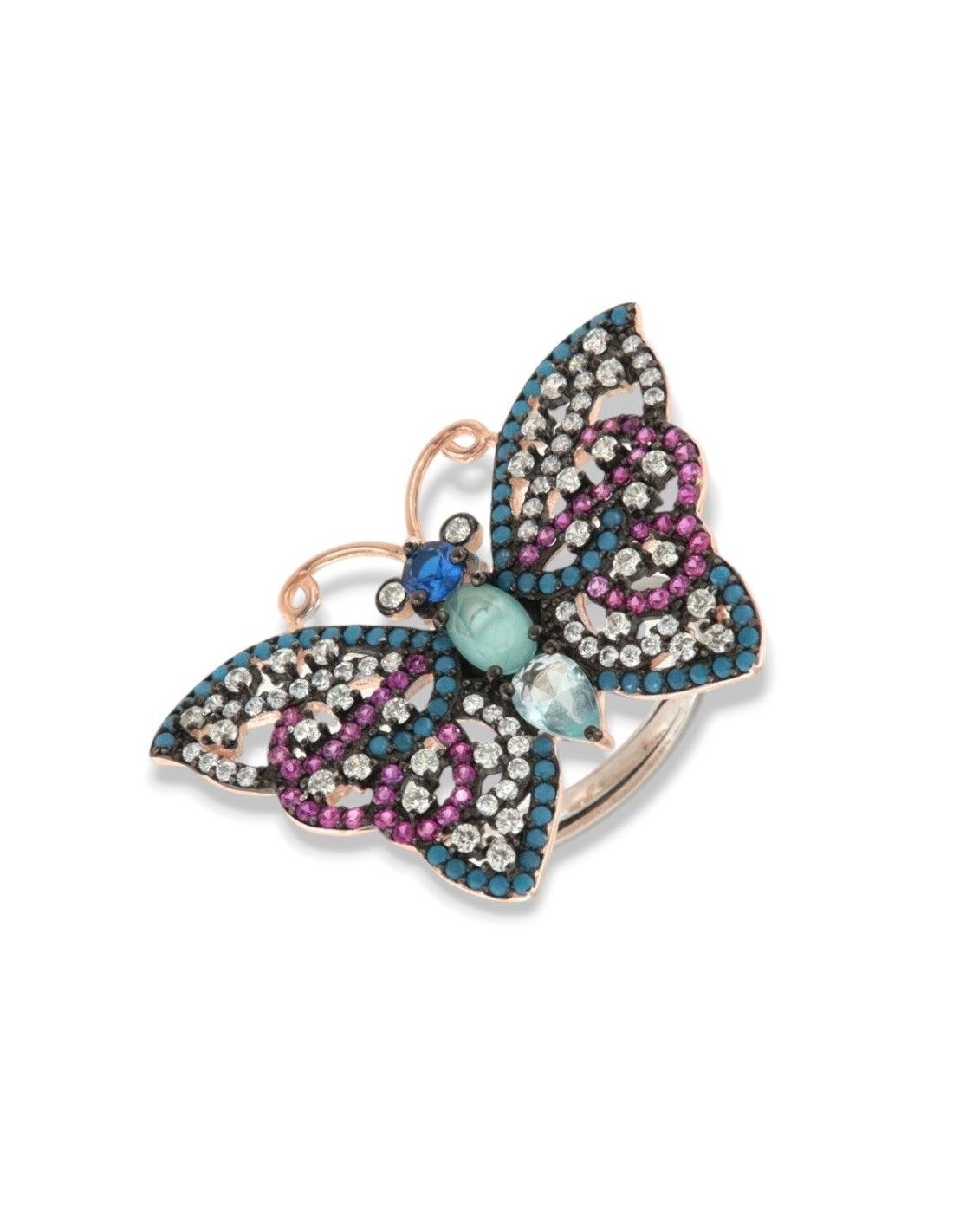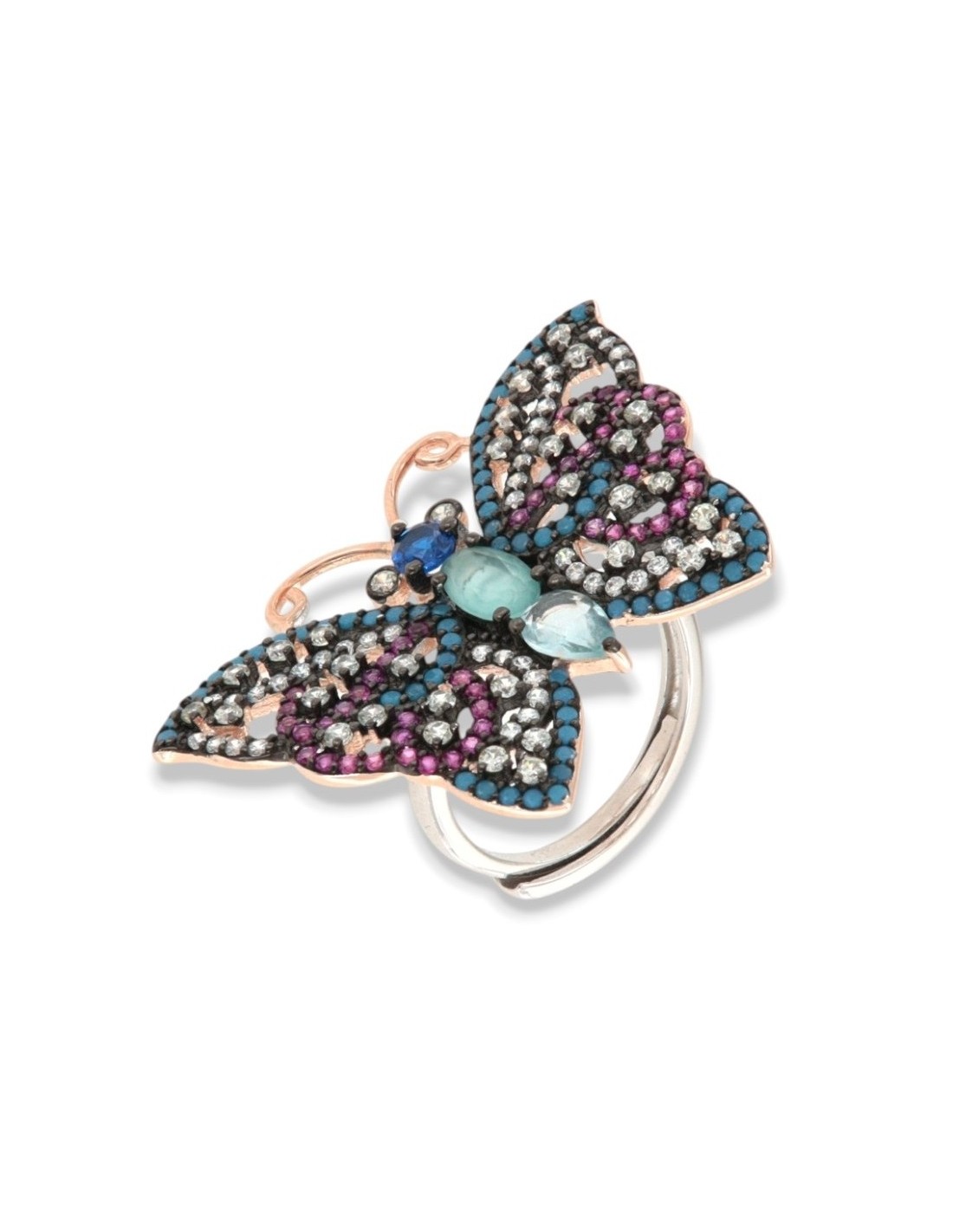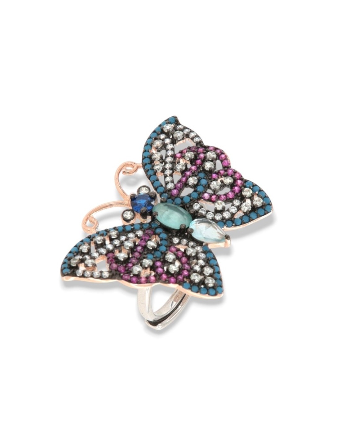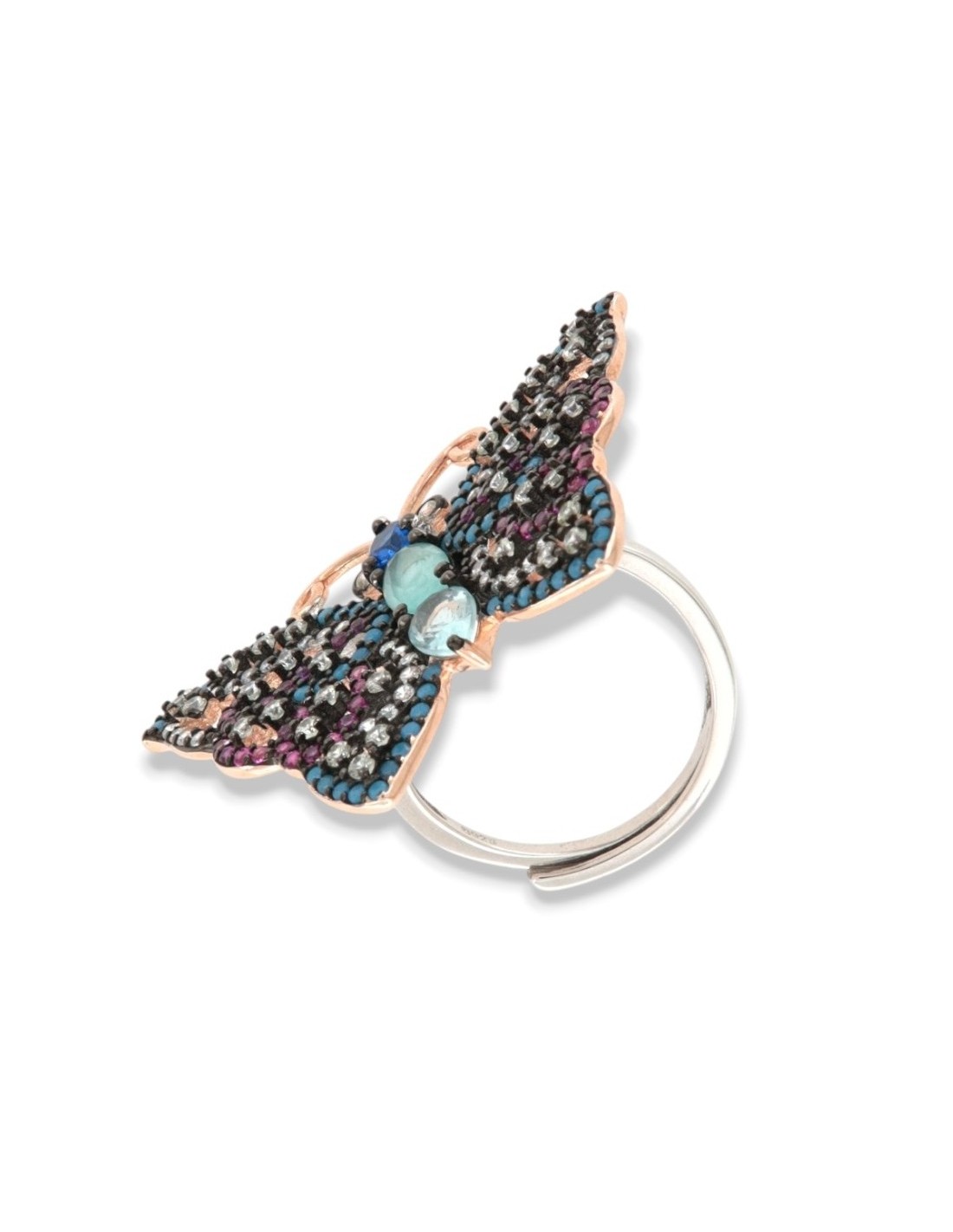 Anello Argento Rodiato Farfalla Zirconi Colorati